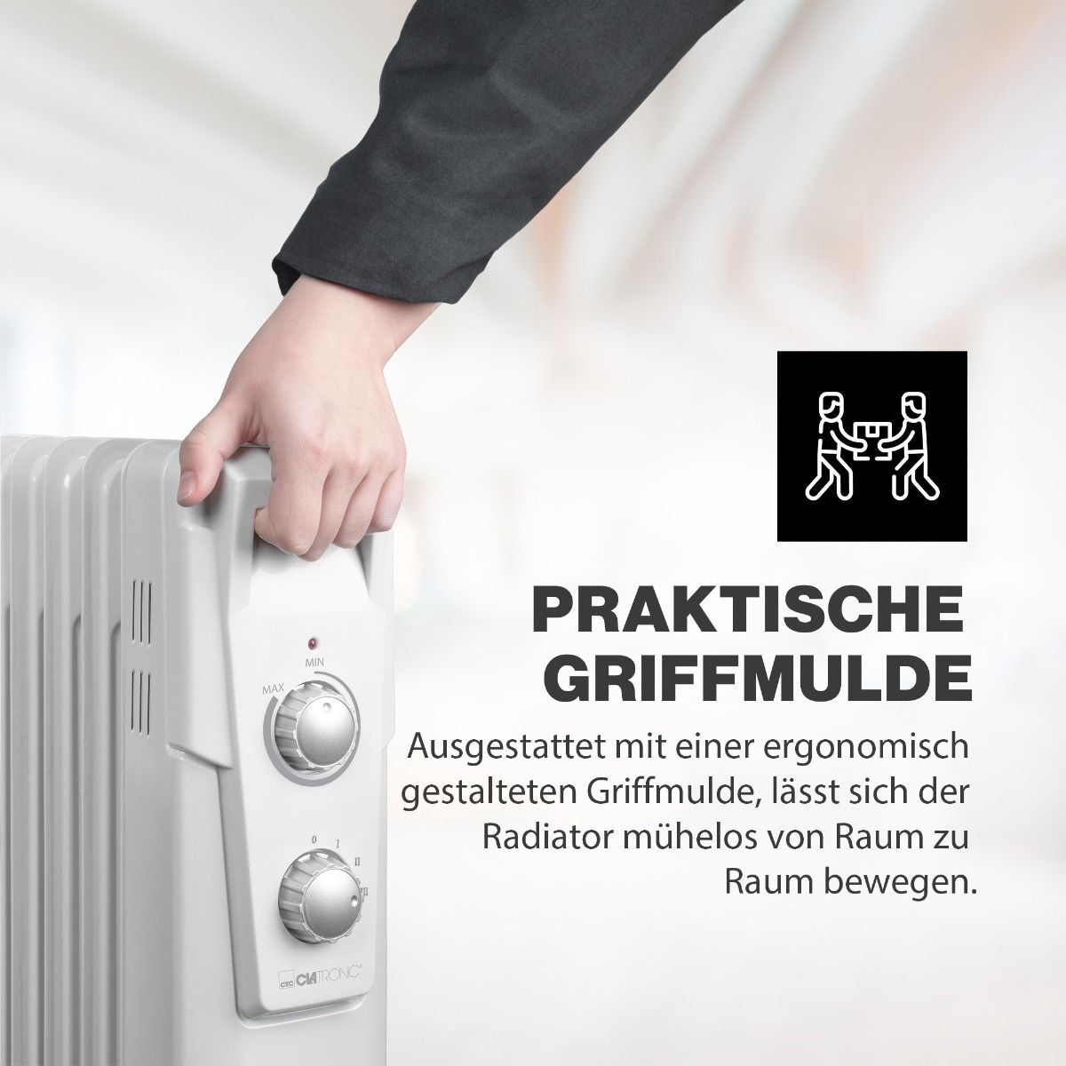 Produktinformationen "Clatronic 263907 elektrischer Ölradiator RA 3736 weiß mit 2000 Watt und 3 Leistungsstufen"