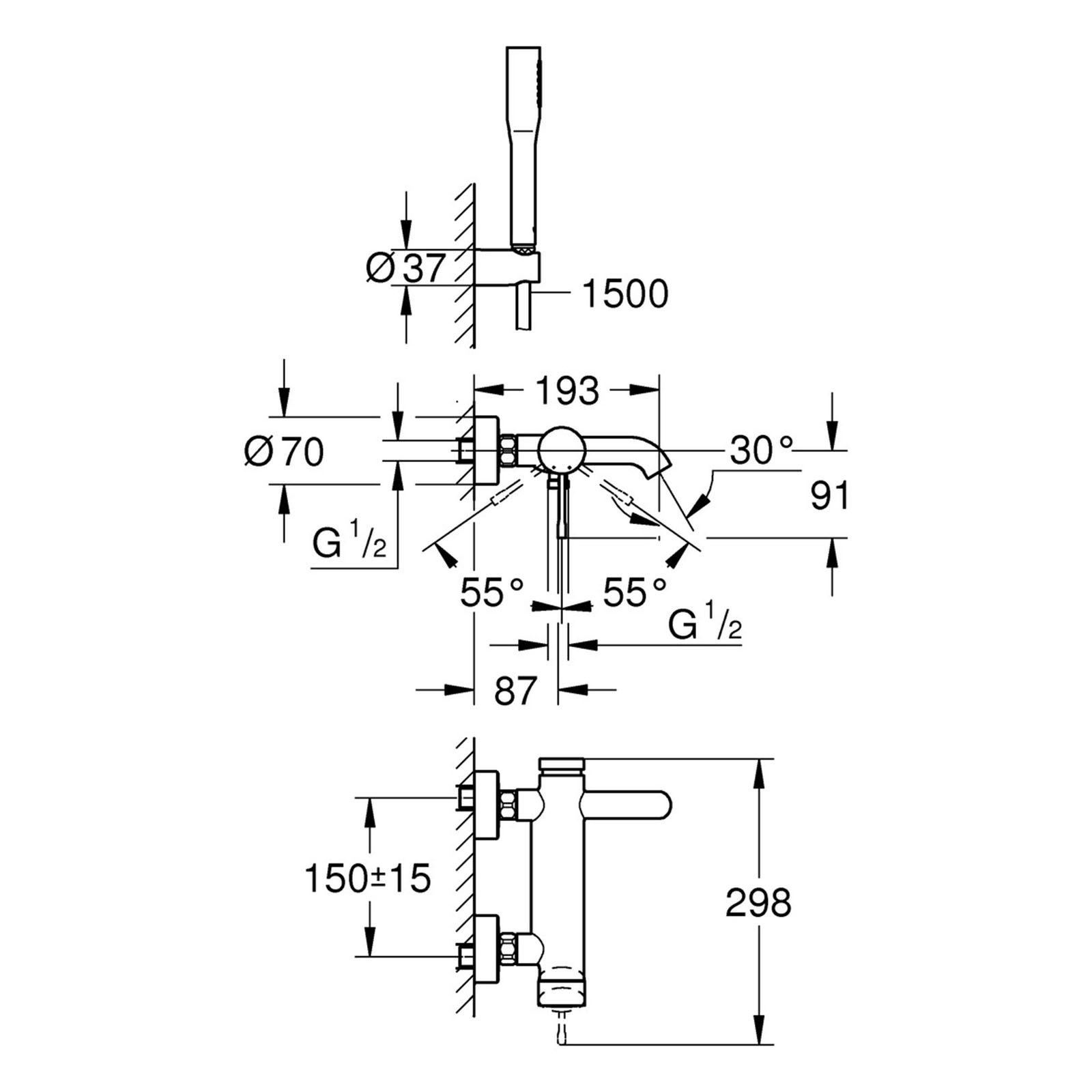 Weiterführende Links zu "Grohe Essence Einhand-Wannenbatterie mit Brausegarnitur Chrom 25249001"