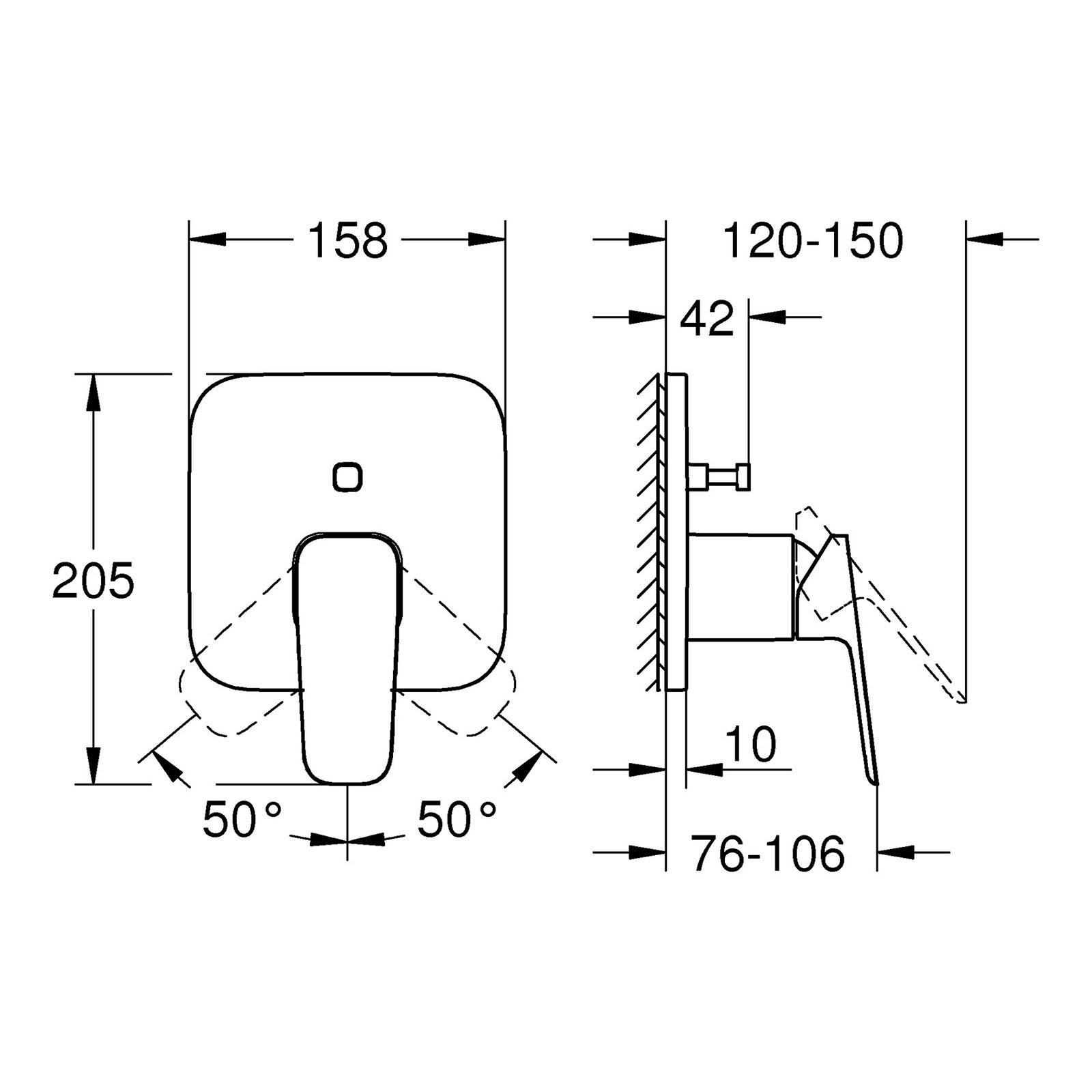 - Wandrosette mit GROHE FastFixation mit verdeckter Rosetten- und Schaftabdichtung, verdeckte Befestigung