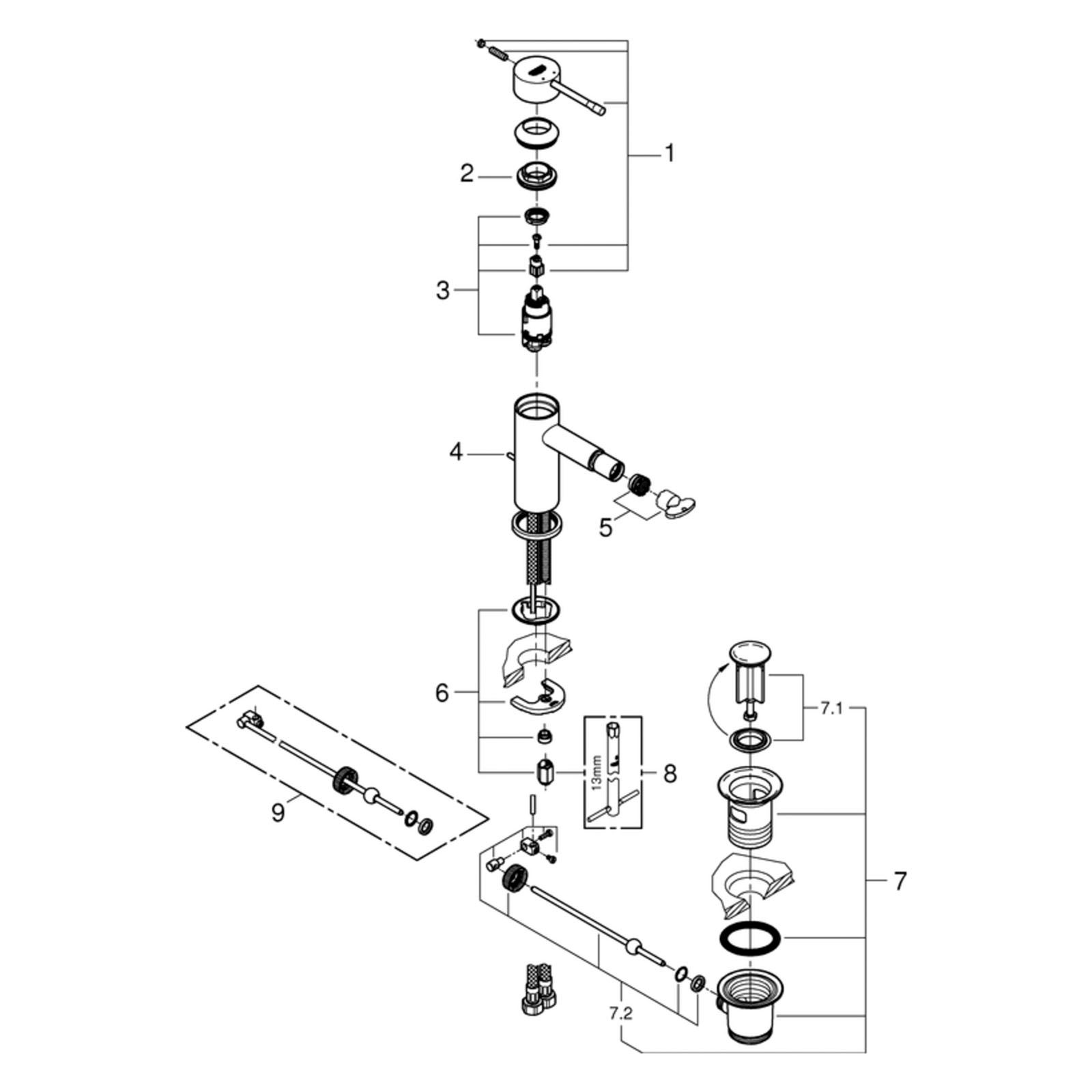 Produktinformationen "Grohe Essence Einhand-Bidetbatterie mit Zugstange-Ablaufgarnitur 24178DL1"