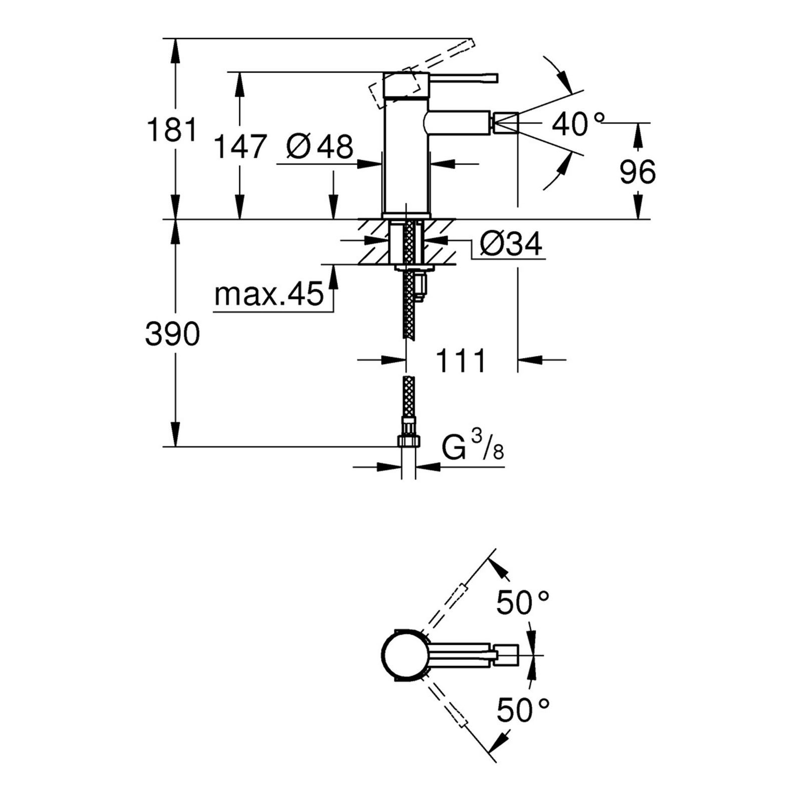 - 1 x Grohe Essence Einhand-Bidetbatterie glatter Körper Schwarz 24395KF1