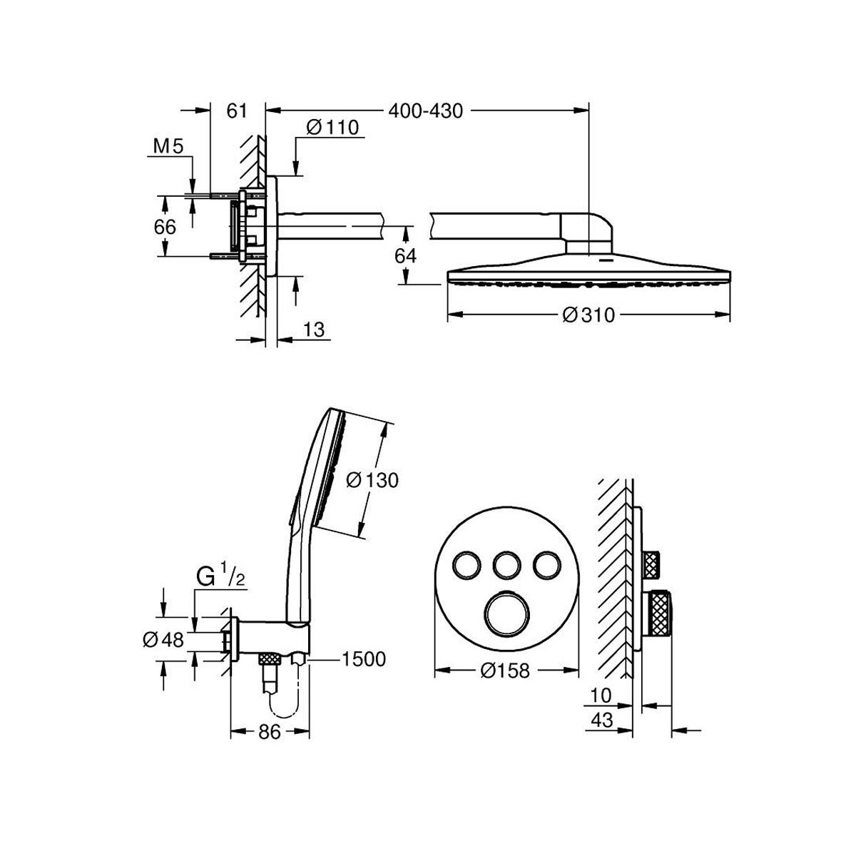 - Grohe Grohtherm SmartControl Duschsystem Unterputz bestehend aus: