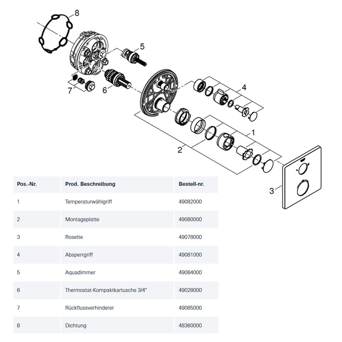 - 1 x Grohtherm UP-Brausethermostat eckig