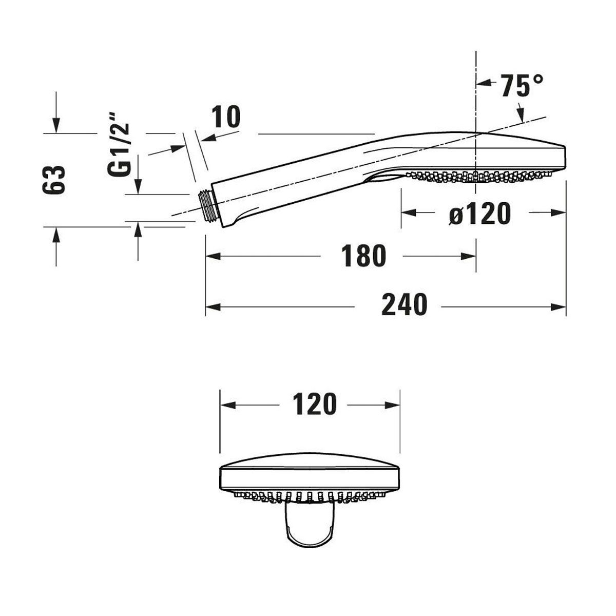- 1 x Duravit Handbrause 3jet MinusFlow wassersparend Chrom mit weißer Strahlscheibe UV0652017010
