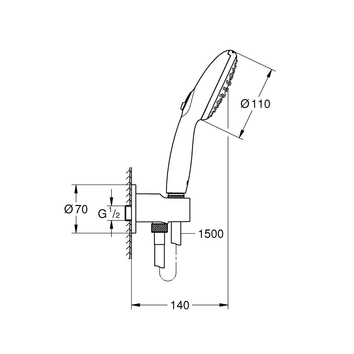 - Grohe Wandhalterset mit Handbrause, Wandanschlussbogen und Brauseschlauch