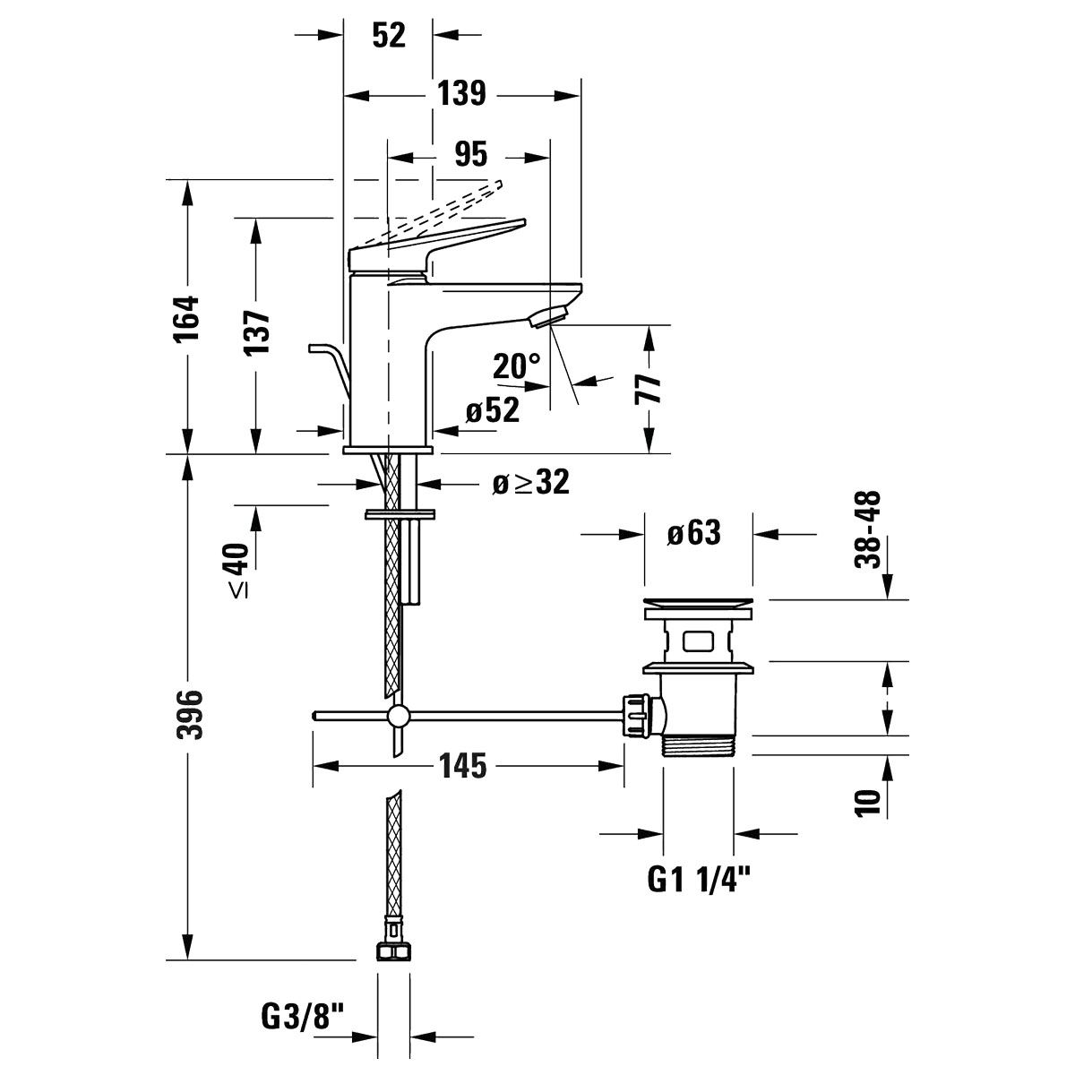 - 1 x Duravit Wave Einhebel-Waschtischmischer mit Zugstange Chrom WA1011001010
