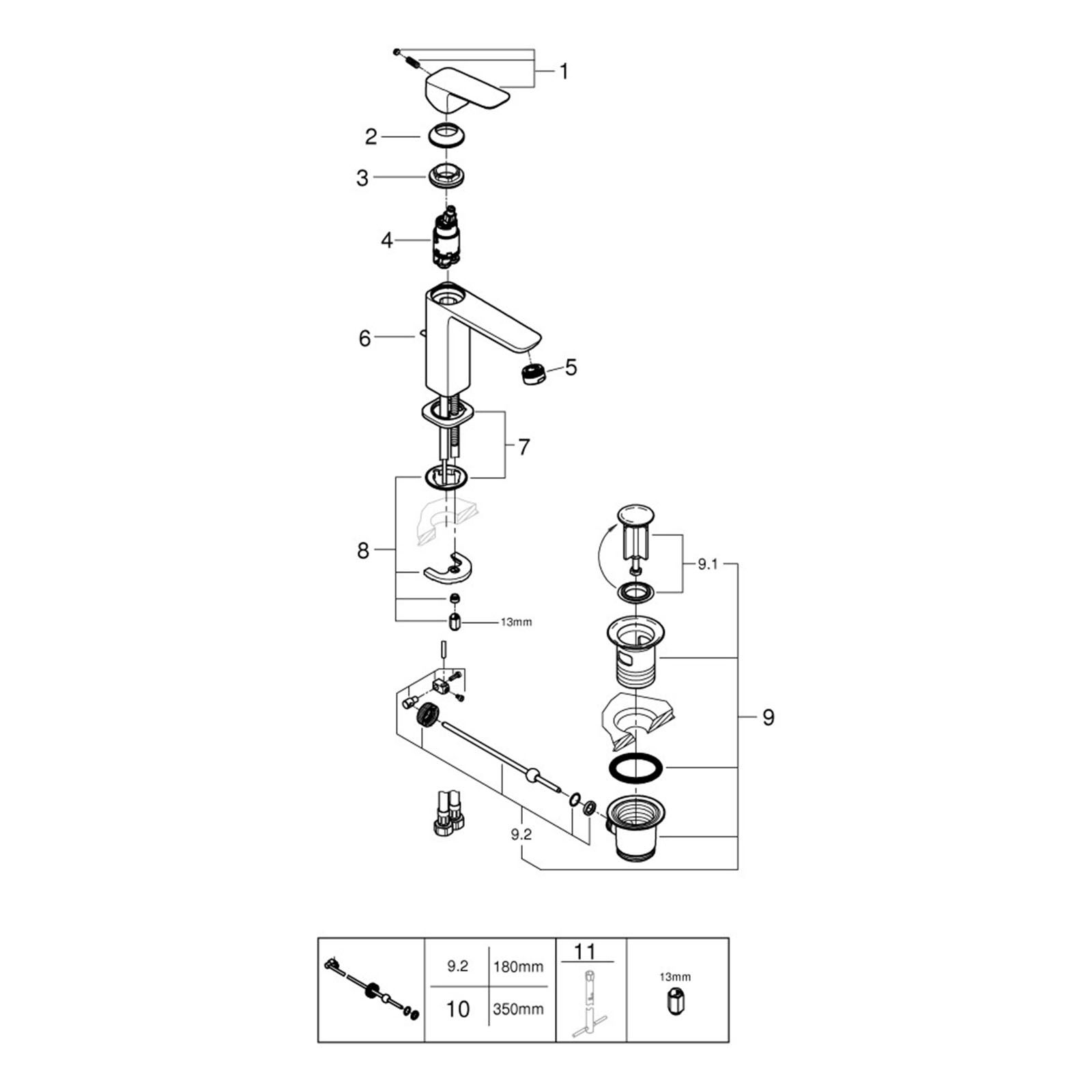 - 1 x Grohe Cubeo Einhand-Waschtischbatterie M-Size Zugstangen-Ablaufgarnitur Chrom 1017490000