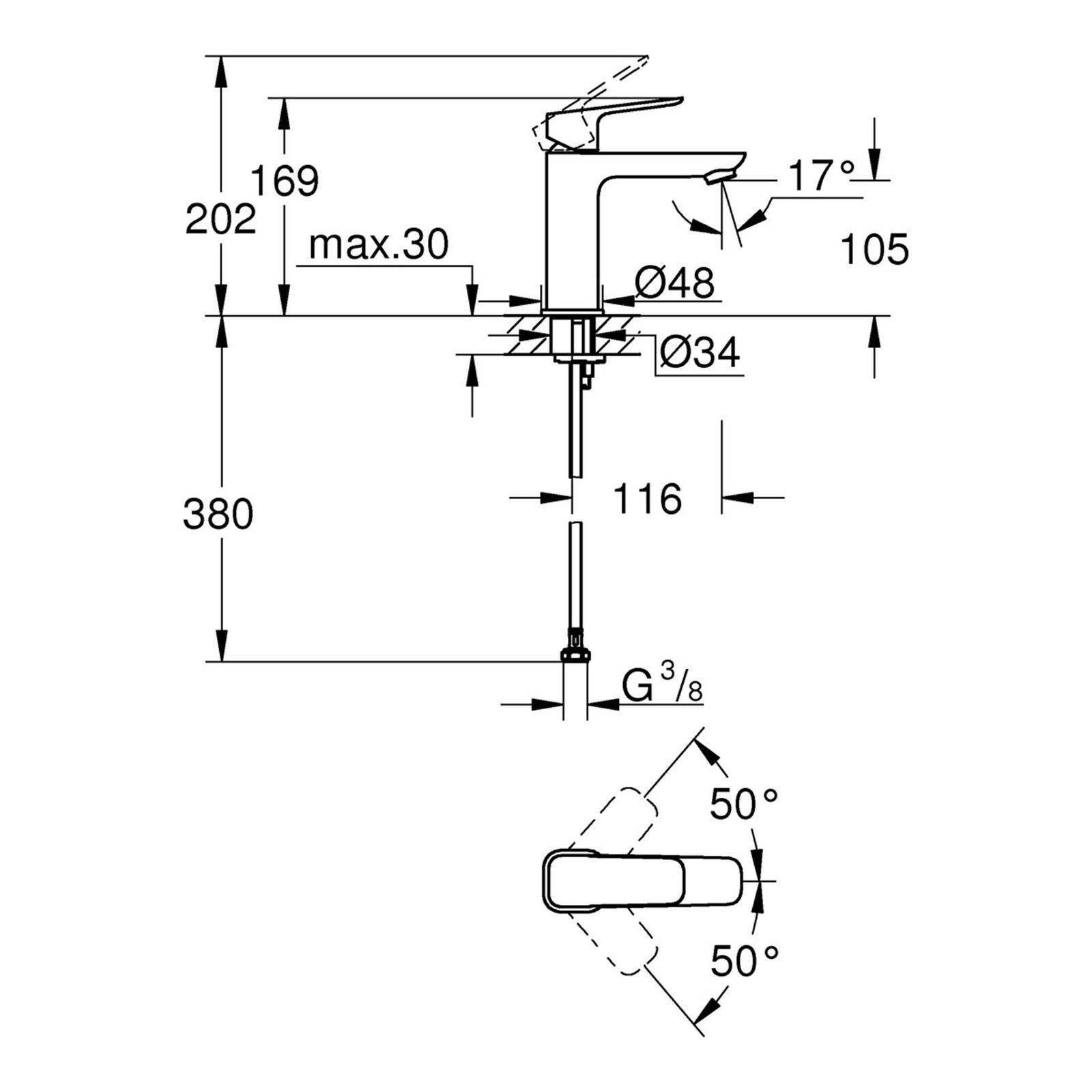 - GROHE Cubeo Einhand-Waschtischbatterie, 1/2 Zoll