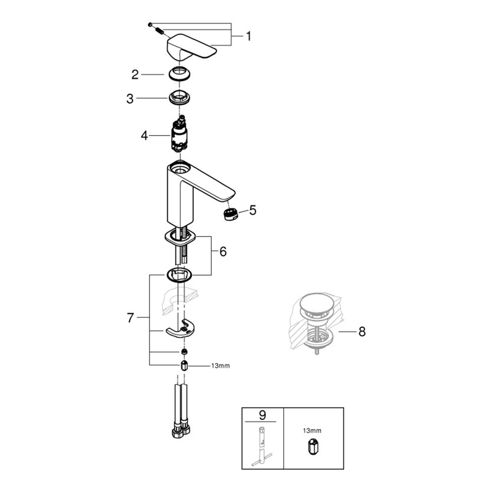 - 1 x Grohe Cubeo Einhand-Waschtischbatterie M-Size glatter Körper Chrom 1017550000