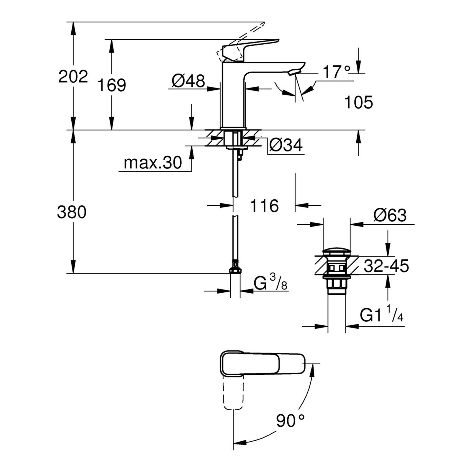 Produktinformationen "Grohe Cubeo Einhand-Waschtischbatterie M-Size Push-open Ablaufgarnitur 1017570000"