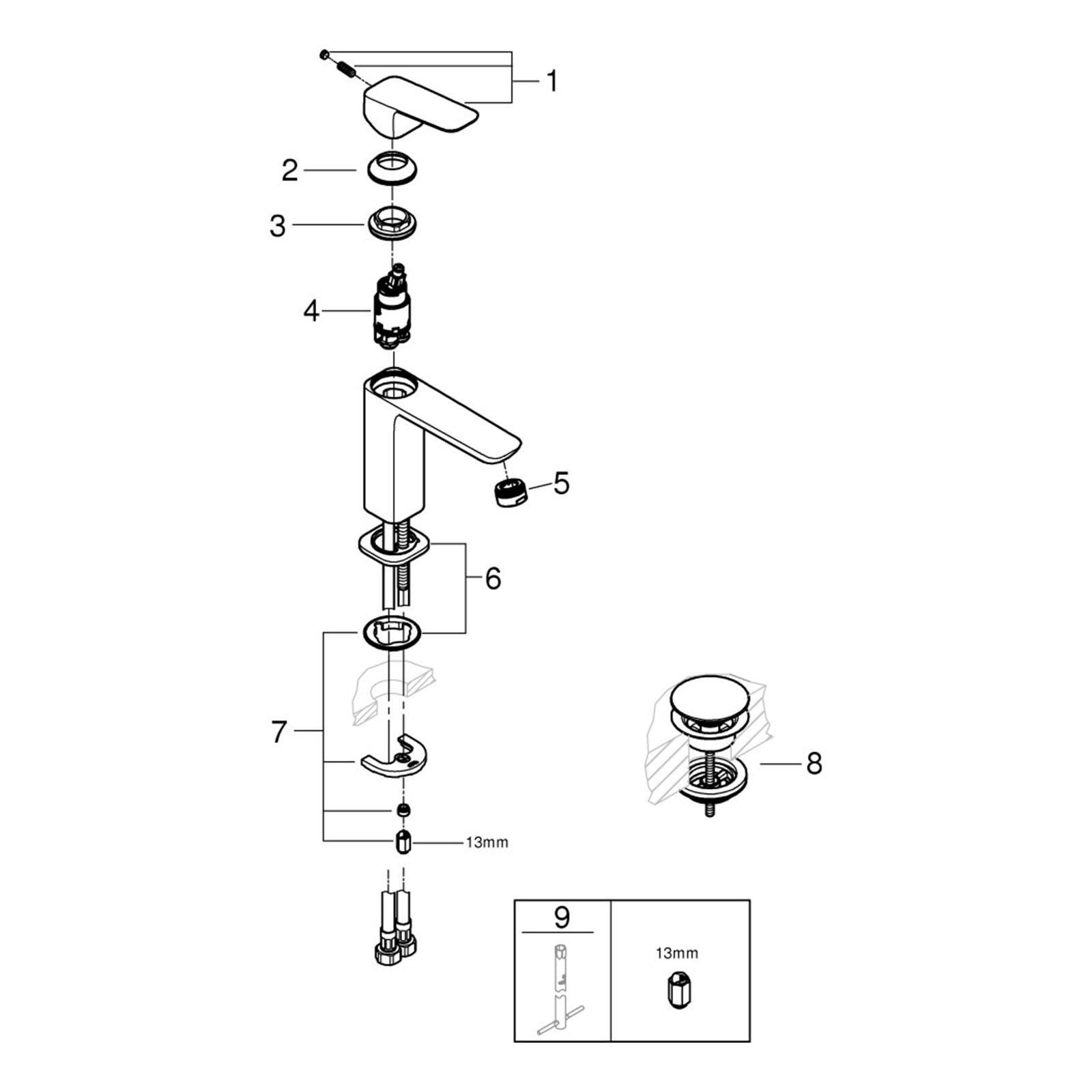 - 1 x Grohe Cubeo Einhand-Waschtischbatterie M-Size Energie-Spar-Funktion mit Push-open Ablaufgarnitur Chrom 1017570000