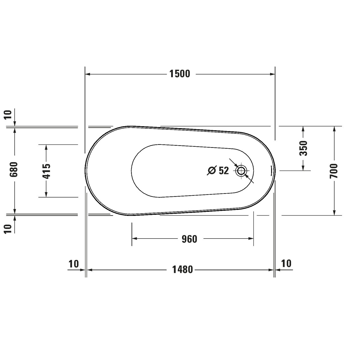 - 1 x Duravit DuraFaro freistehende Badewanne 150 x 700 cm 700566000000000