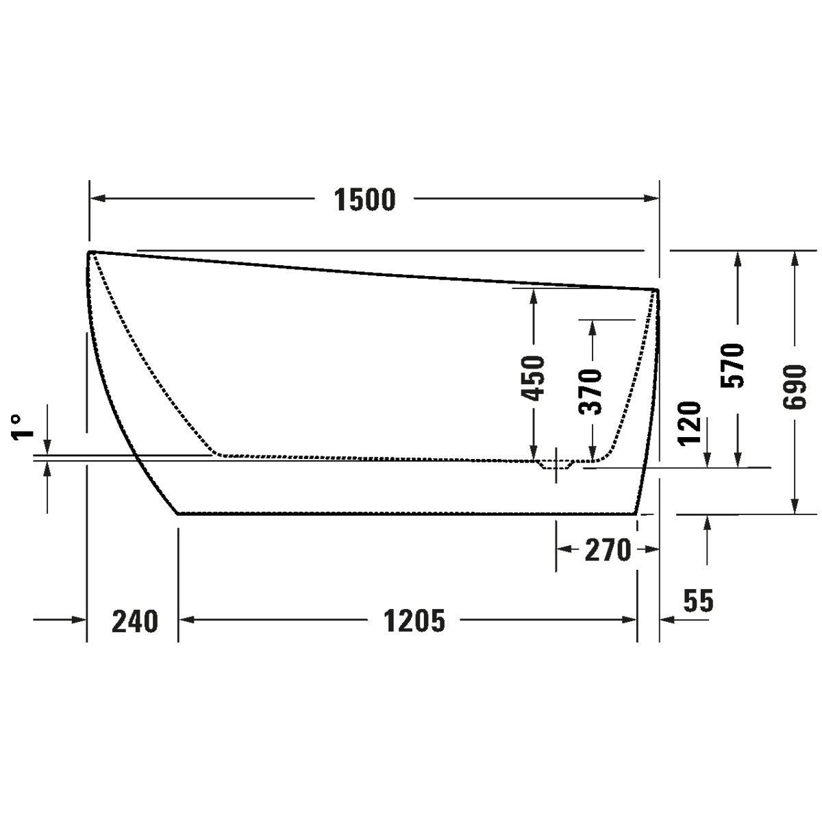 - Wannenboden: 1205 x 450 mm