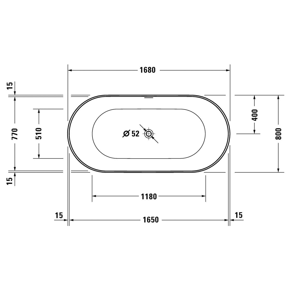 - 1 x Duravit DuraKanto freistehende Oval Badewanne 168x80 cm Weiß Glänzend 700561000000000