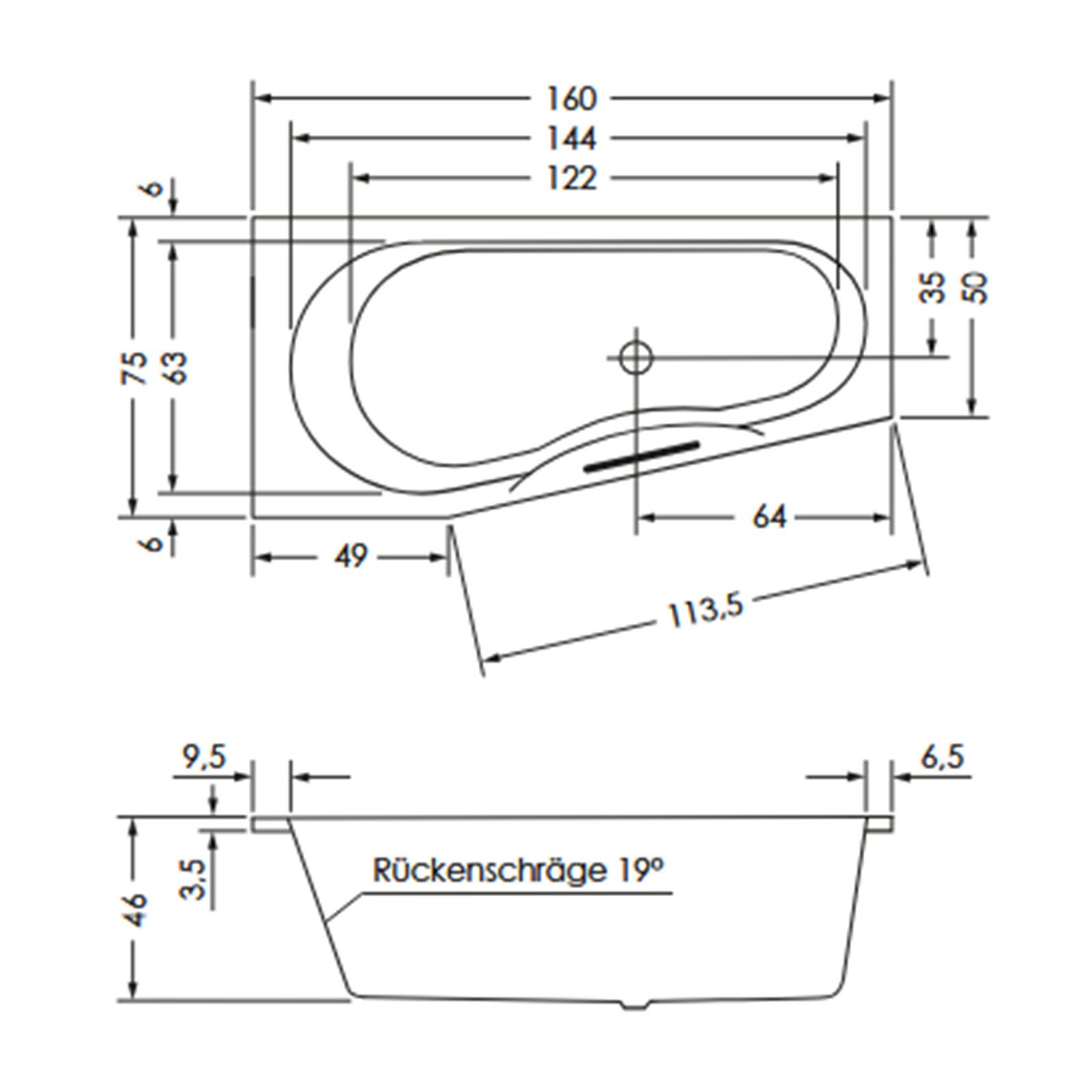 - 1 x repaBAD Tika Raumspar Badewanne Rechts aus Acryl 160 x 75 cm in weiß 0015107