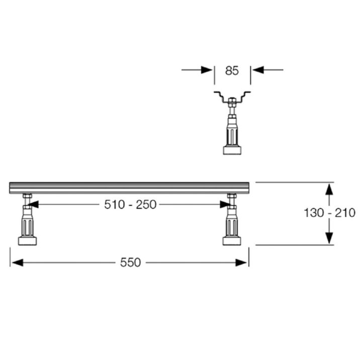 - bestehend aus 2 Stück Traversen 550x85x25 mm und 4 Stück höhenverstellbare Schraubfüße