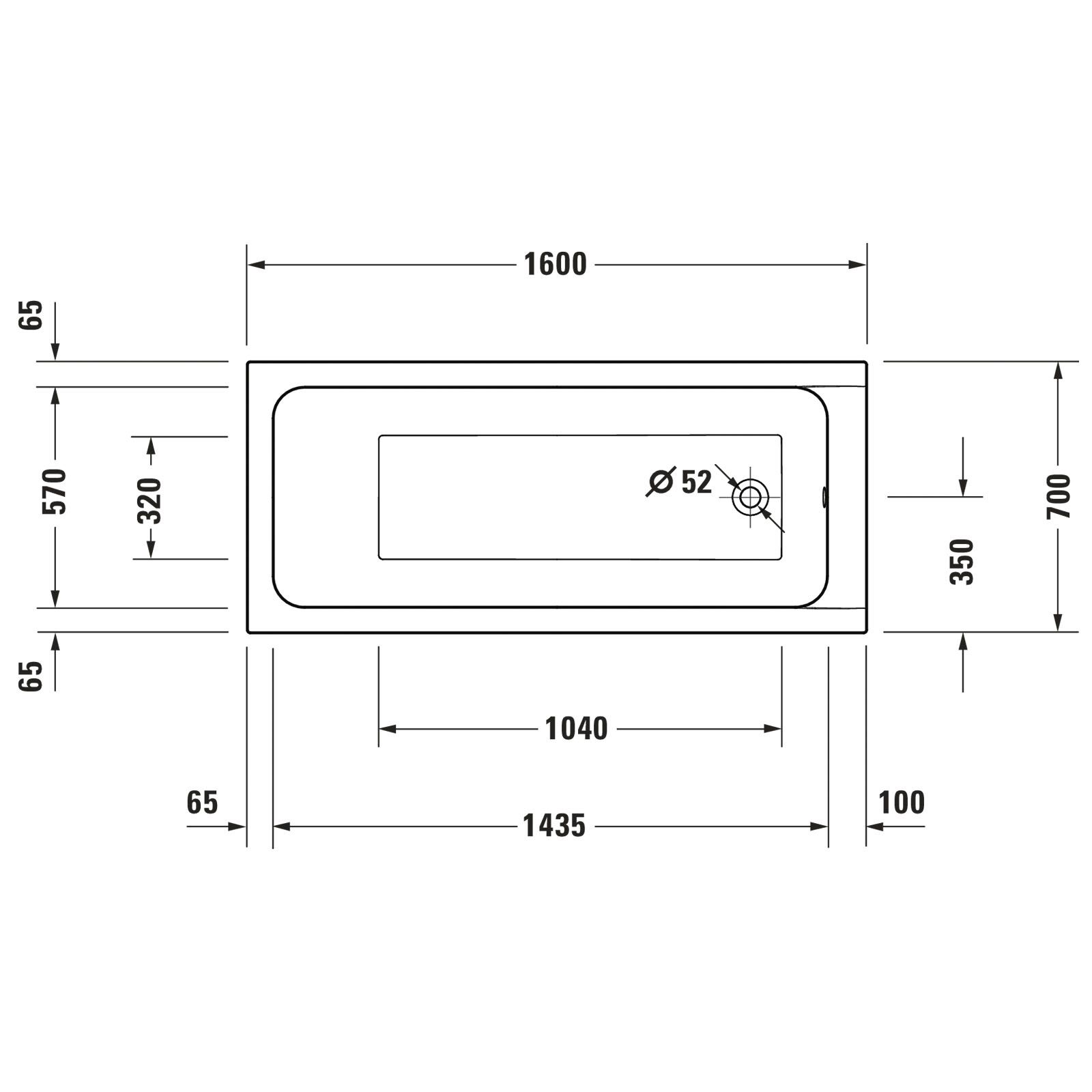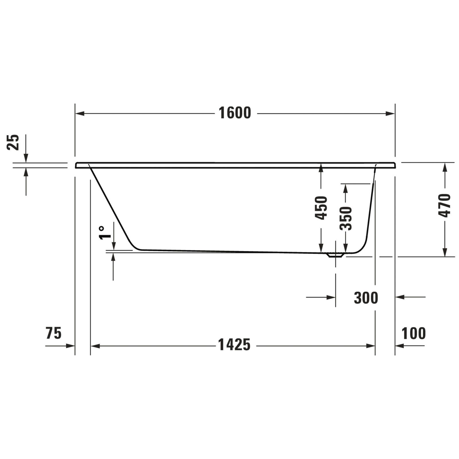 - 1 x Duravit D-Code Serie 2025 Badewanne 700x1600x470 mm 700669000000000