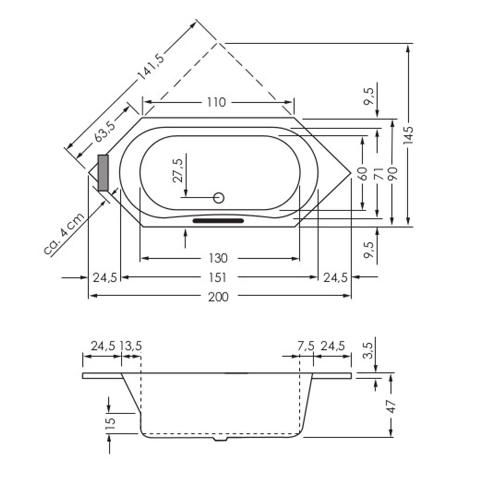 - 1 x repaBad Alicante Badewanne 6-eckig 200 x 90 cm 0000470