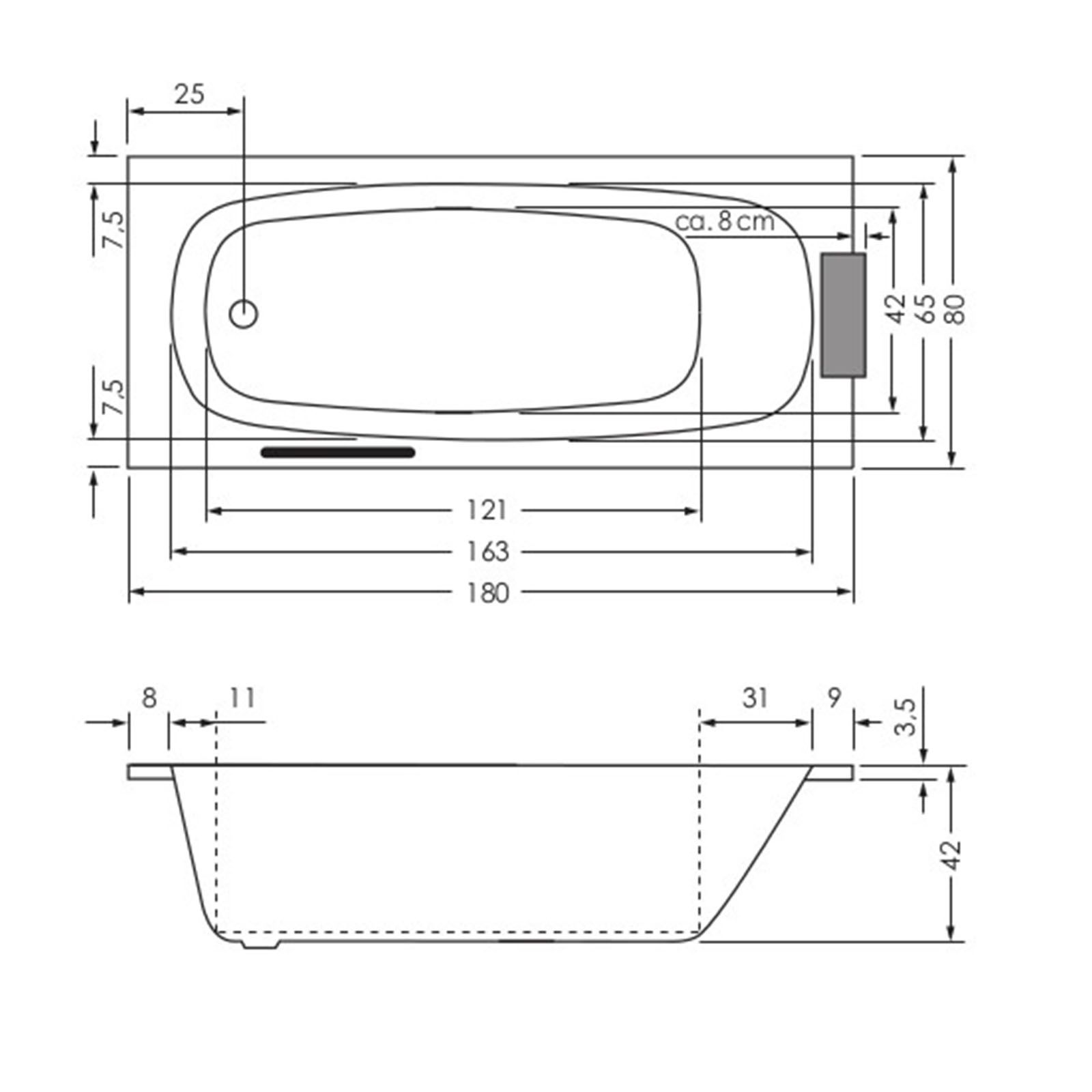 - 1 x repaBAD Namsos Rechteck-Badewanne / Körperformwanne aus Acryl 180x80 Weiß 0028124