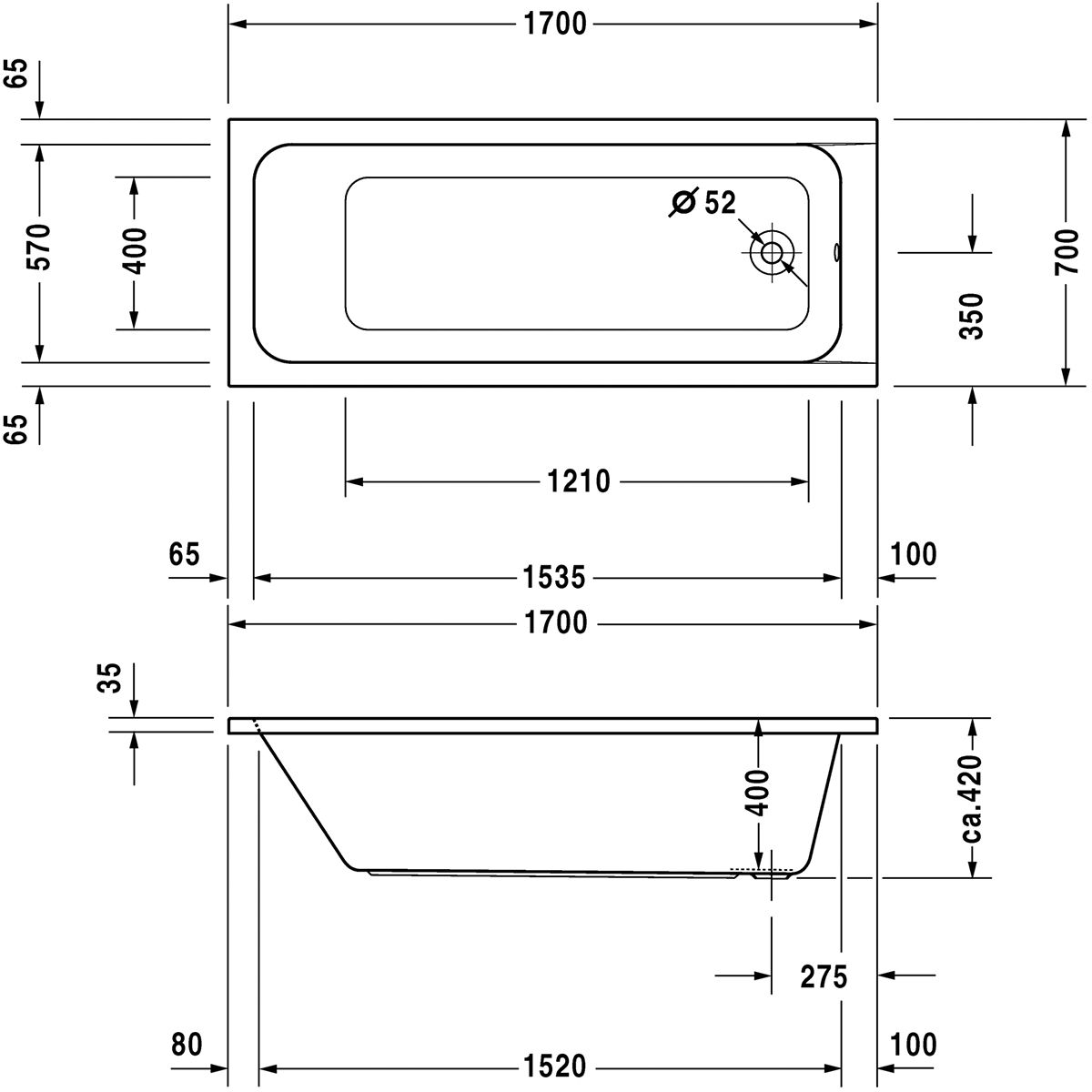 Produktinformationen "Duravit D-Code Badewanne 170x70cm 700098000000000 aus Sanitäracryl"