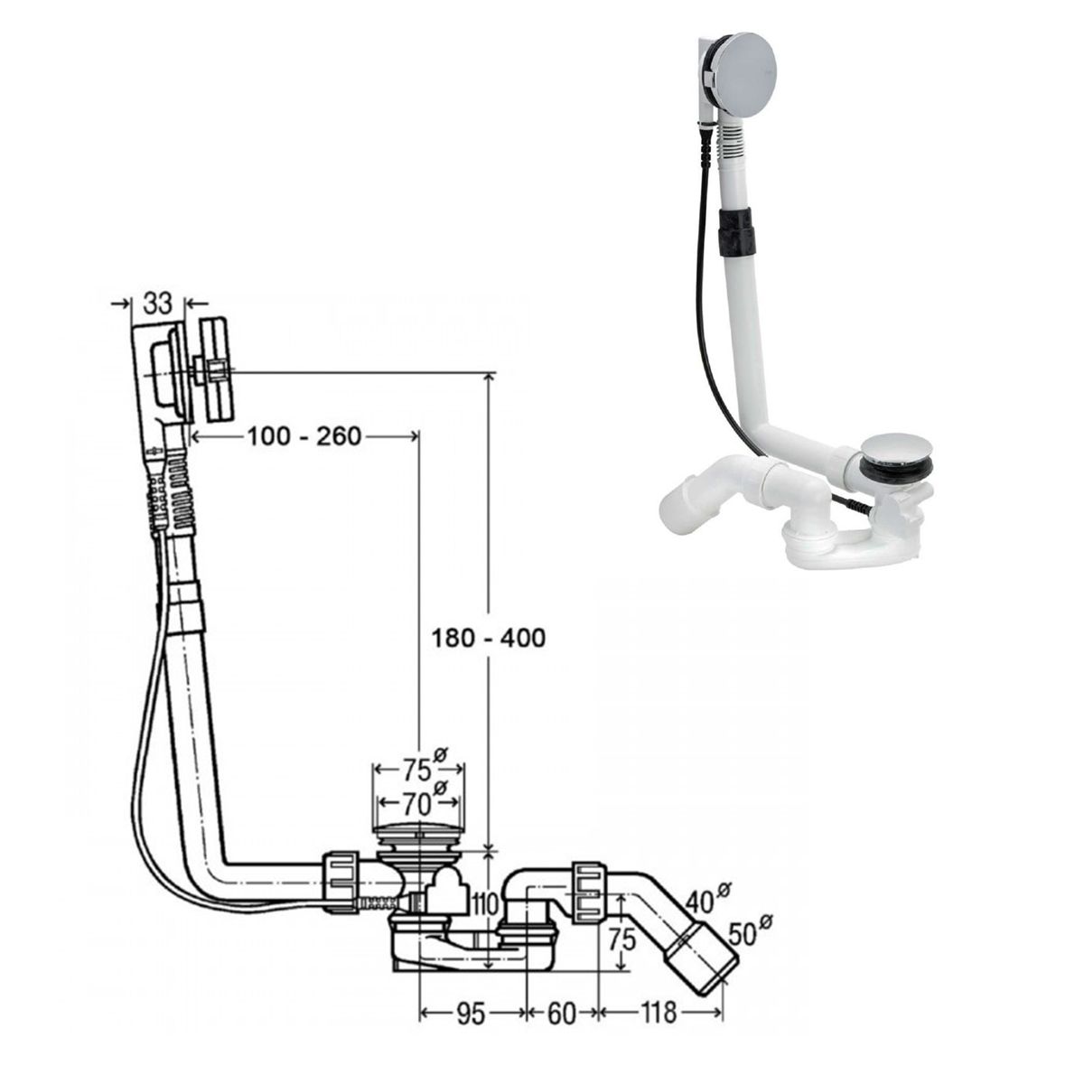 - für Normalbadewannen und tiefe Duschwannen DN 40/50 mit Ø 52 mm Ablaufloch