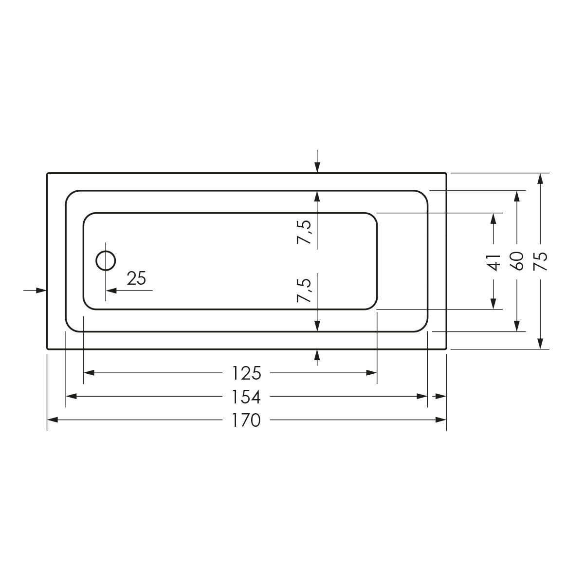 - 1 x Badewanne Abano Mono 170 x 75 cm