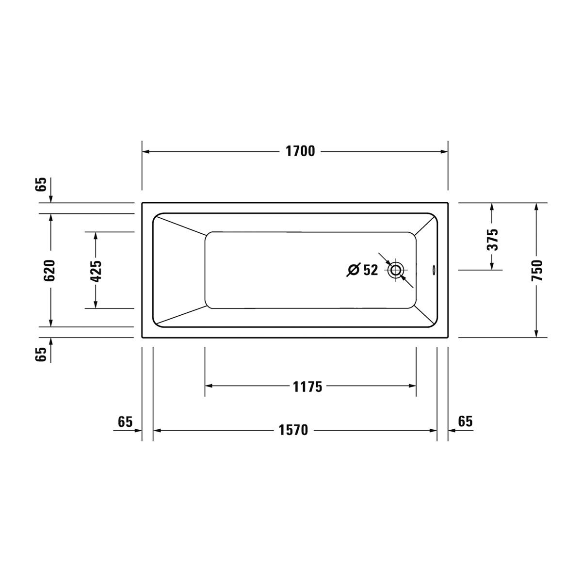 - Abmessungen innen am Wannenrand 1570 x 620 mm