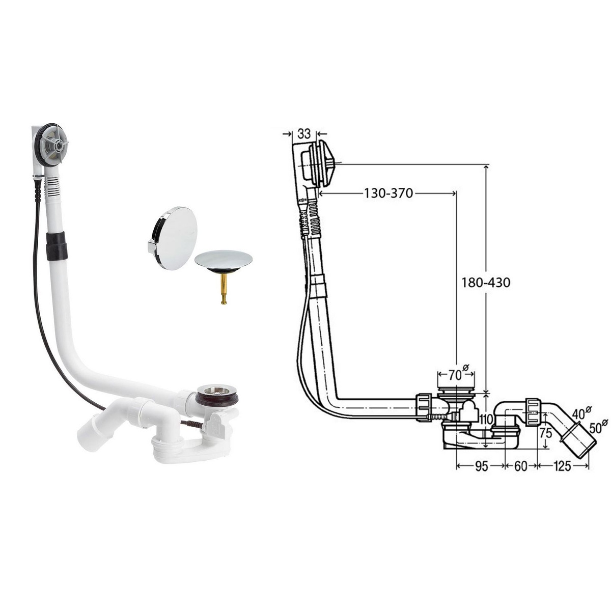- für Normalbadewannen und tiefe Duschwannen DN 40/50 mit Ø 52 mm Ablaufloch