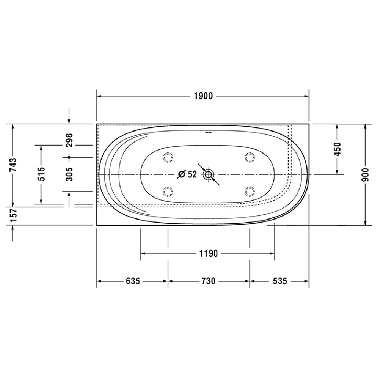 - Zubehör optional: Duravit Wannengriff (nur werkseitig montierbar)
