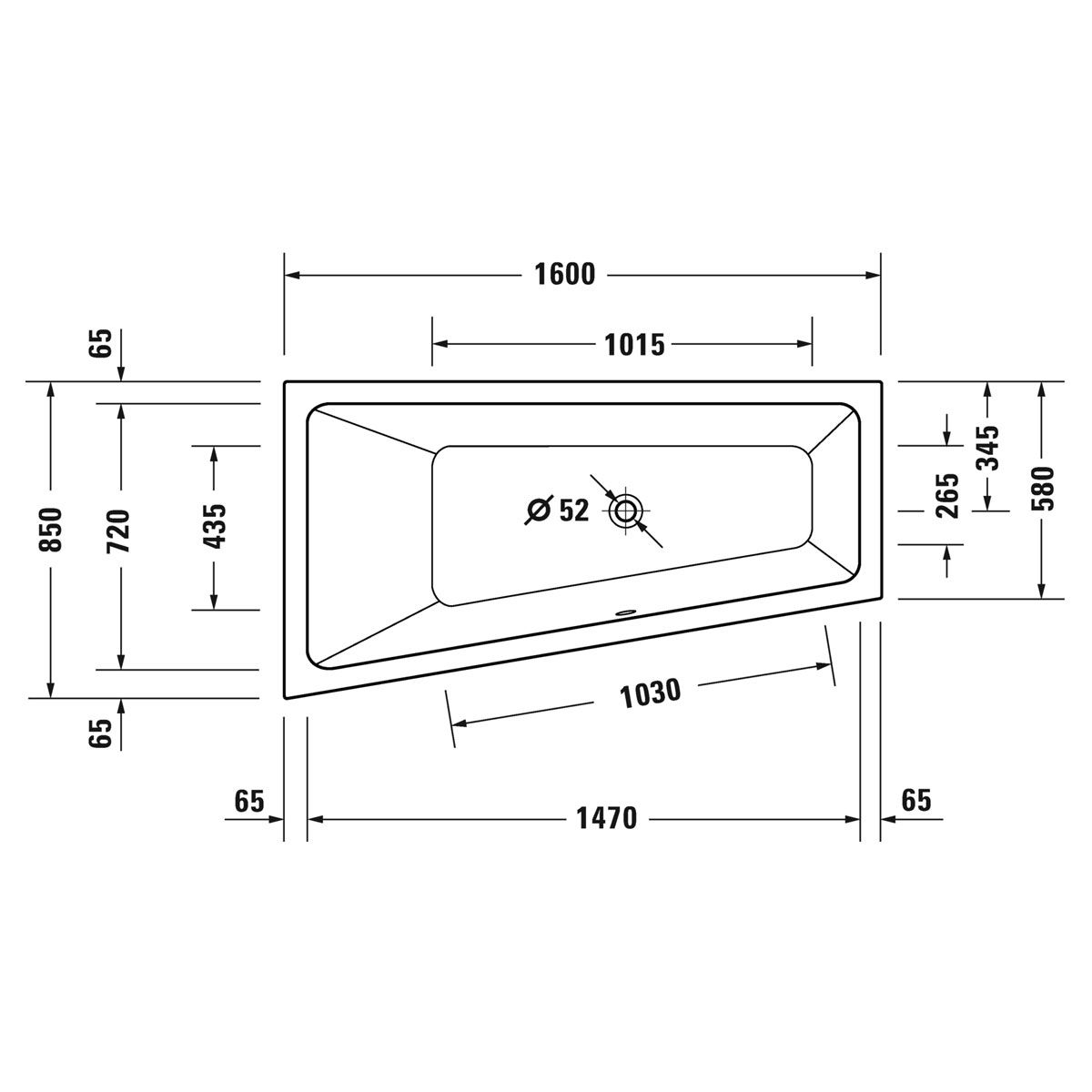 - 1 x Duravit Opportunity Acryl Badewanne Trapezform 160 x 85 cm 700598000000000