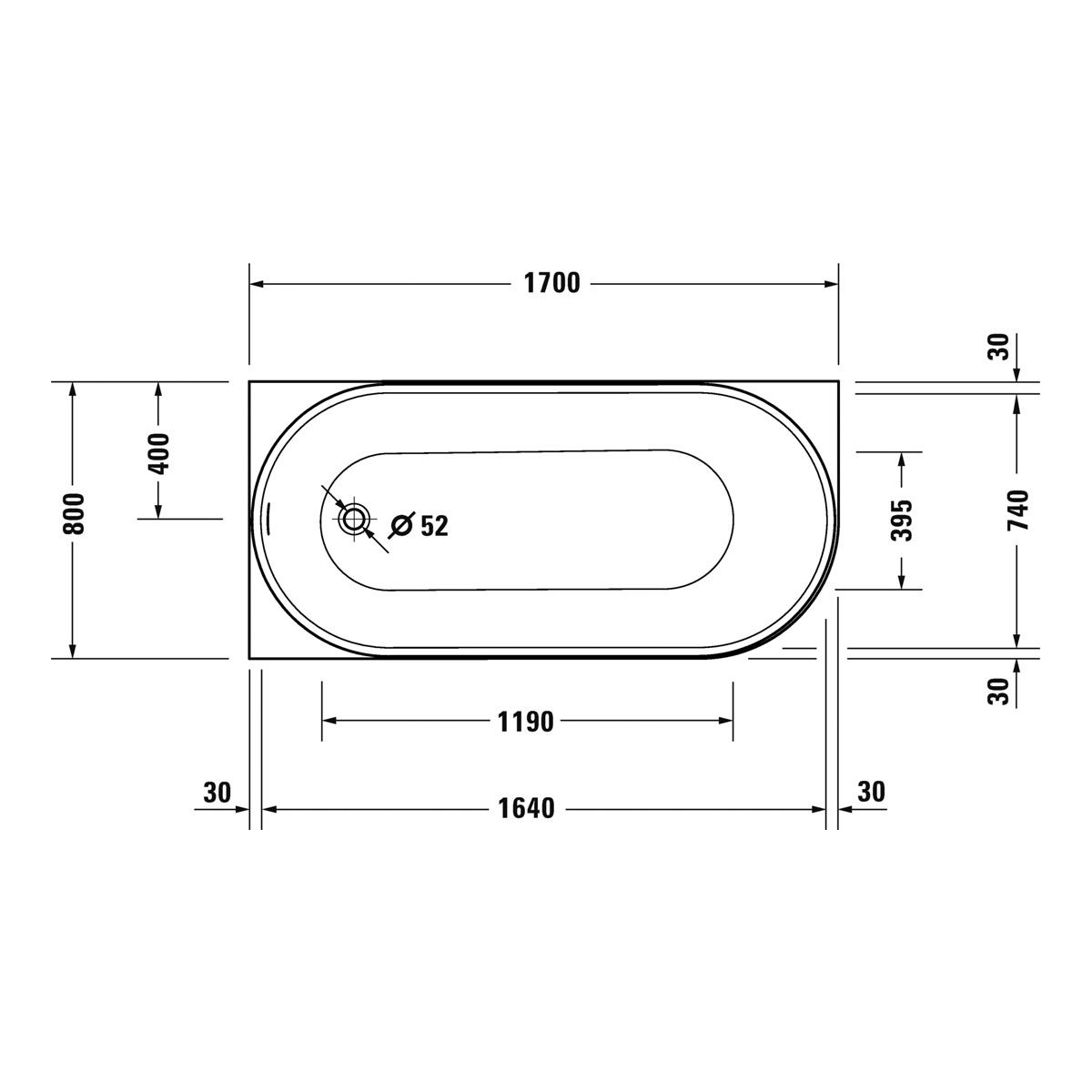 - 1 x Duravit DuraSenja Badewanne Ecke links 170 x 80 cm 700580000000000