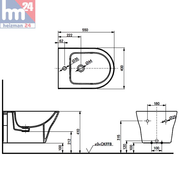 - Bodenfreiheit: 100 mm (bei Einbauhöhe 410 mm)