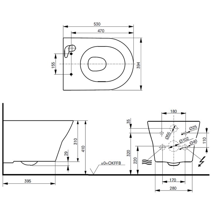 - ausschließlich für die Installation der Washlet´s GL 2.0 (TCF6532C3G) und EK 2.0 (TCF6632C3G) mit verdeckten Anschlüssen