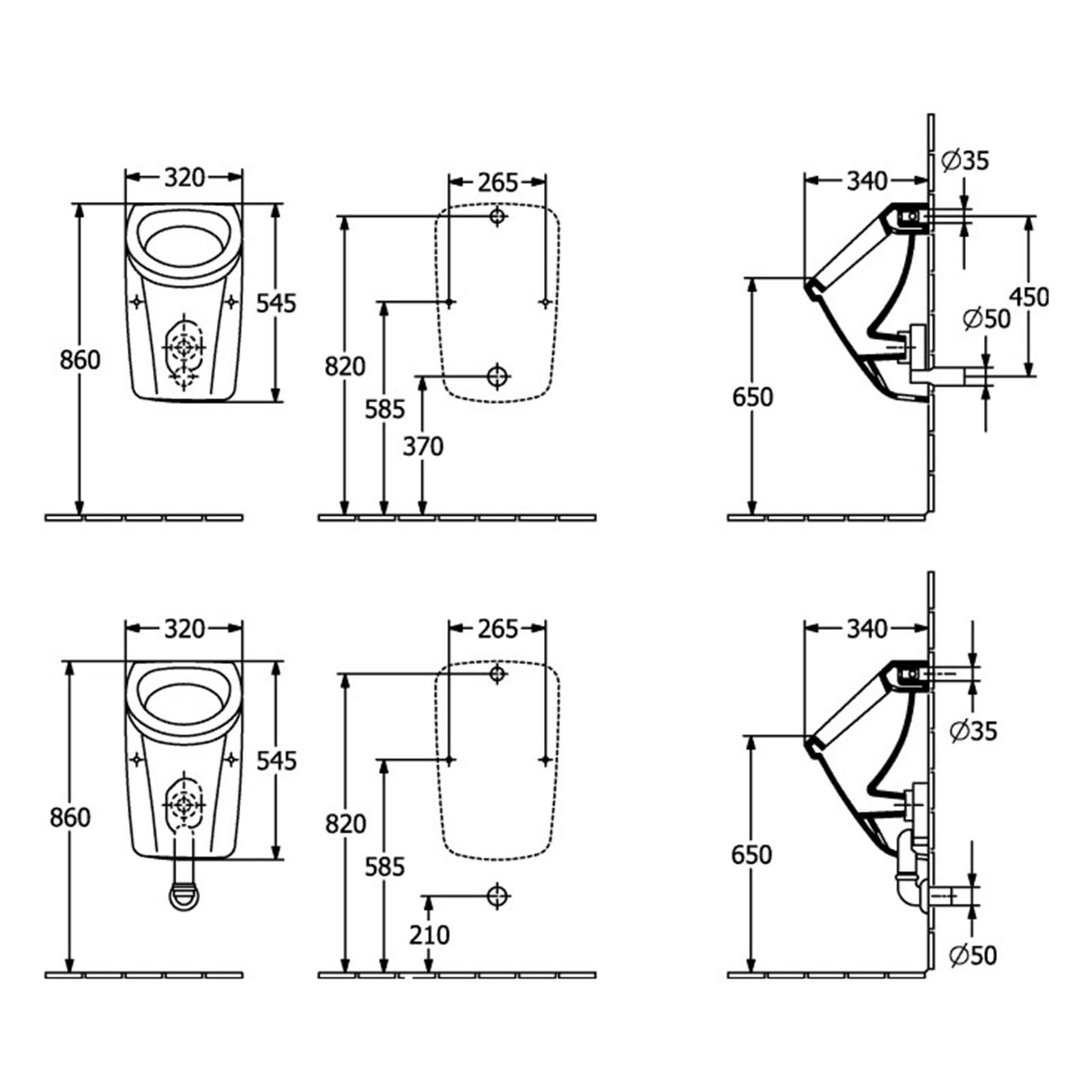 - 1 x Villeroy & Boch Absaug-Urinal Newo Zulauf von hinten 340 x 320 x 545 mm 55940001