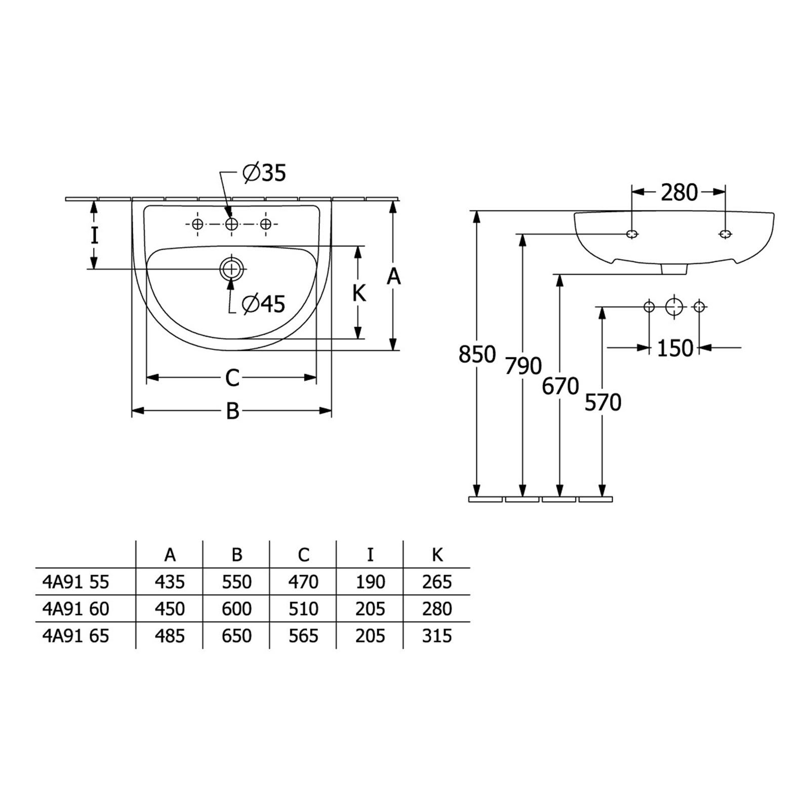 - Armaturenloch: Mittig