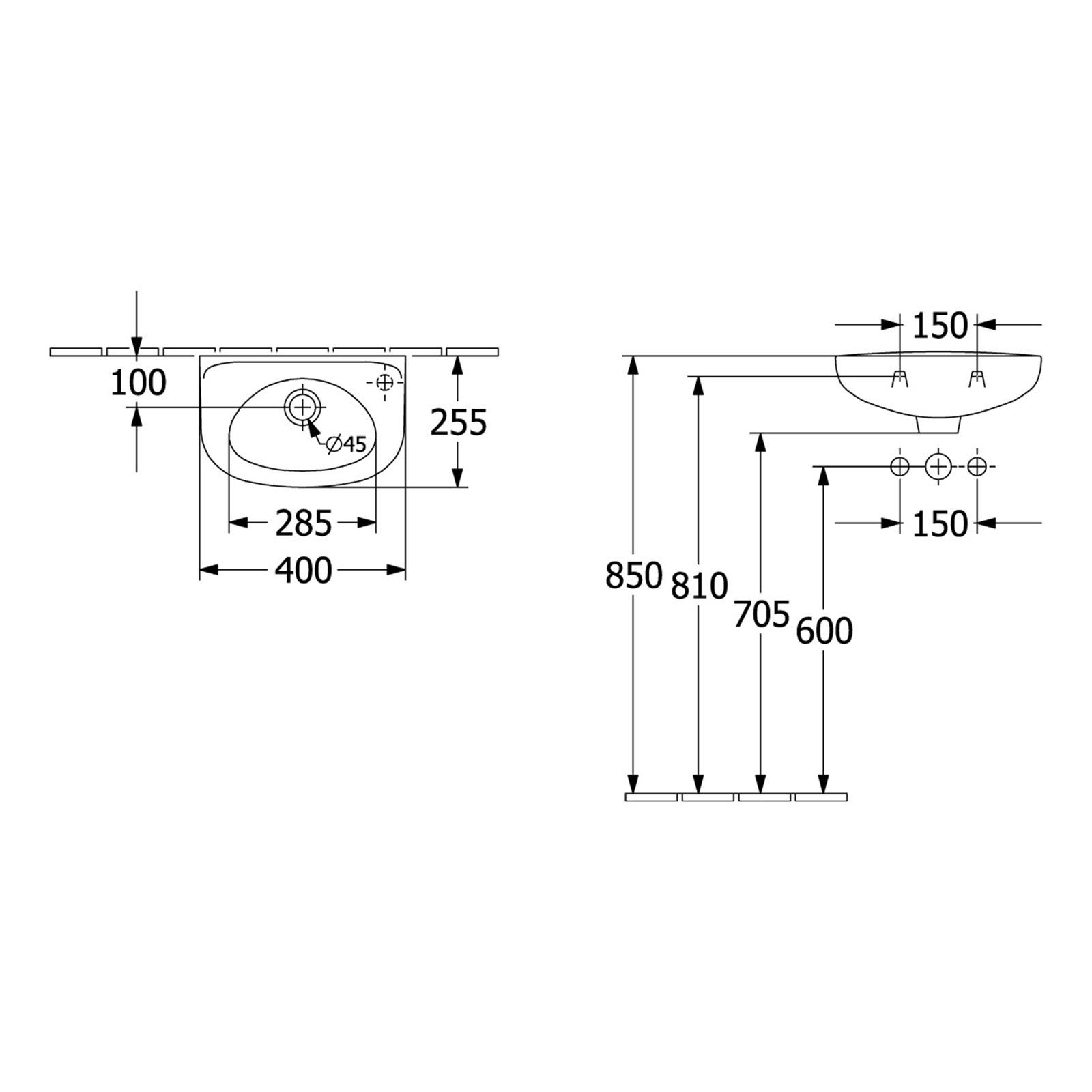 Weiterführende Links zu "Villeroy & Boch Handwaschbecken Newo Armatur rechts 400 x 250 mm 43944R01"