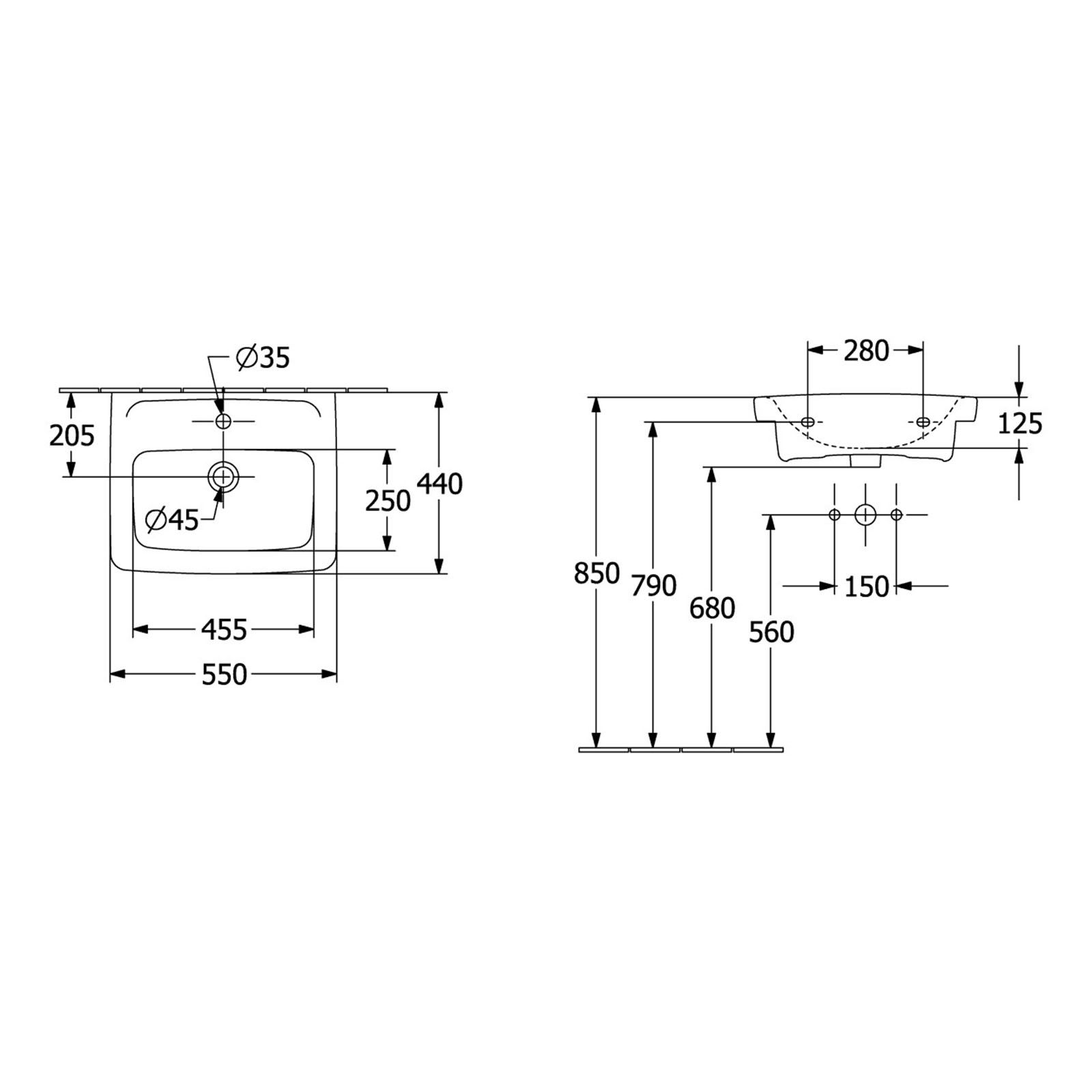 Weiterführende Links zu "Villeroy & Boch Waschbecken Newo 550 x 440 mm Eckig 4A925501"