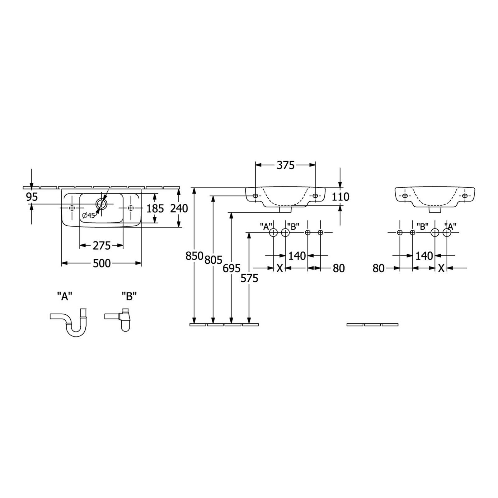 Weiterführende Links zu "Villeroy & Boch Handwaschbecken Newo Armatur links 500 x 240 mm 43935001"