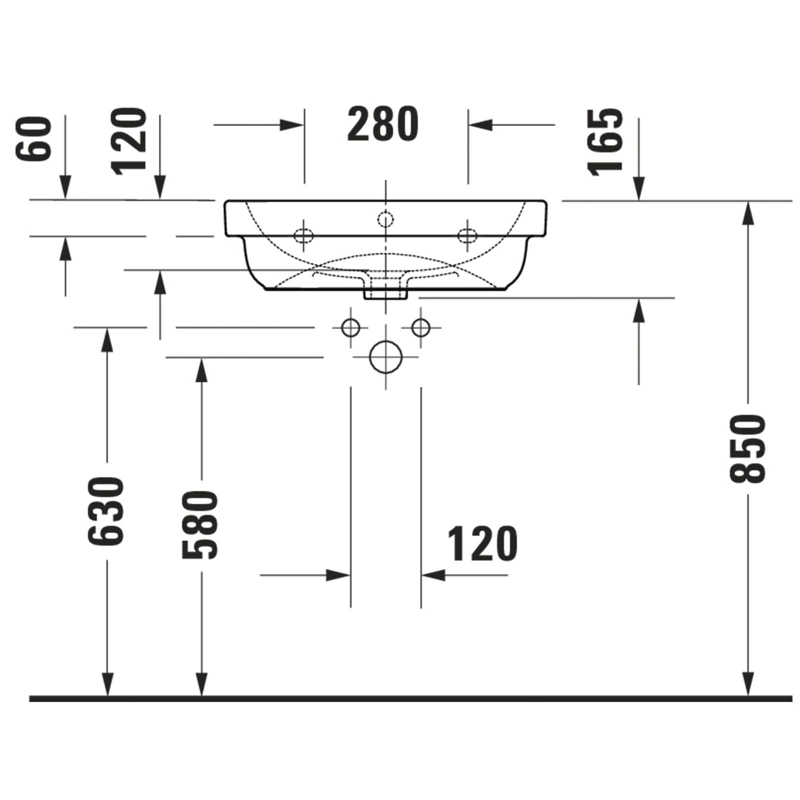 Duravit Happy D.2 Aufsatzbecken 600x460 mm weiß 236060 keramische Ventilabdeckhaube, Hahnlochbank