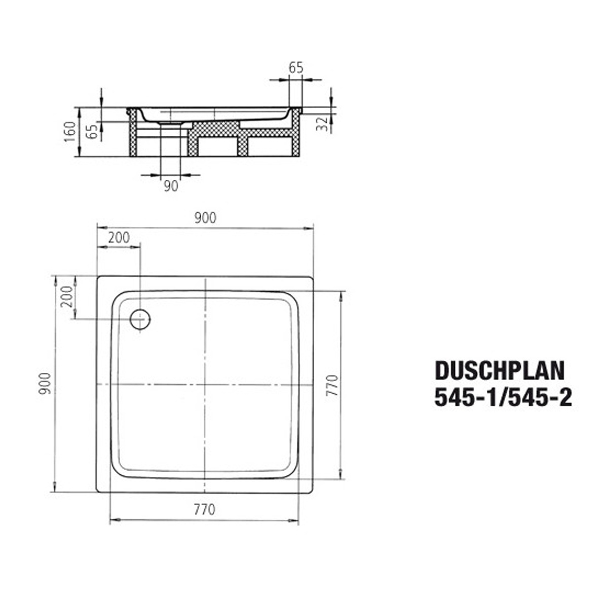 - Duschflächenform: Quadrat