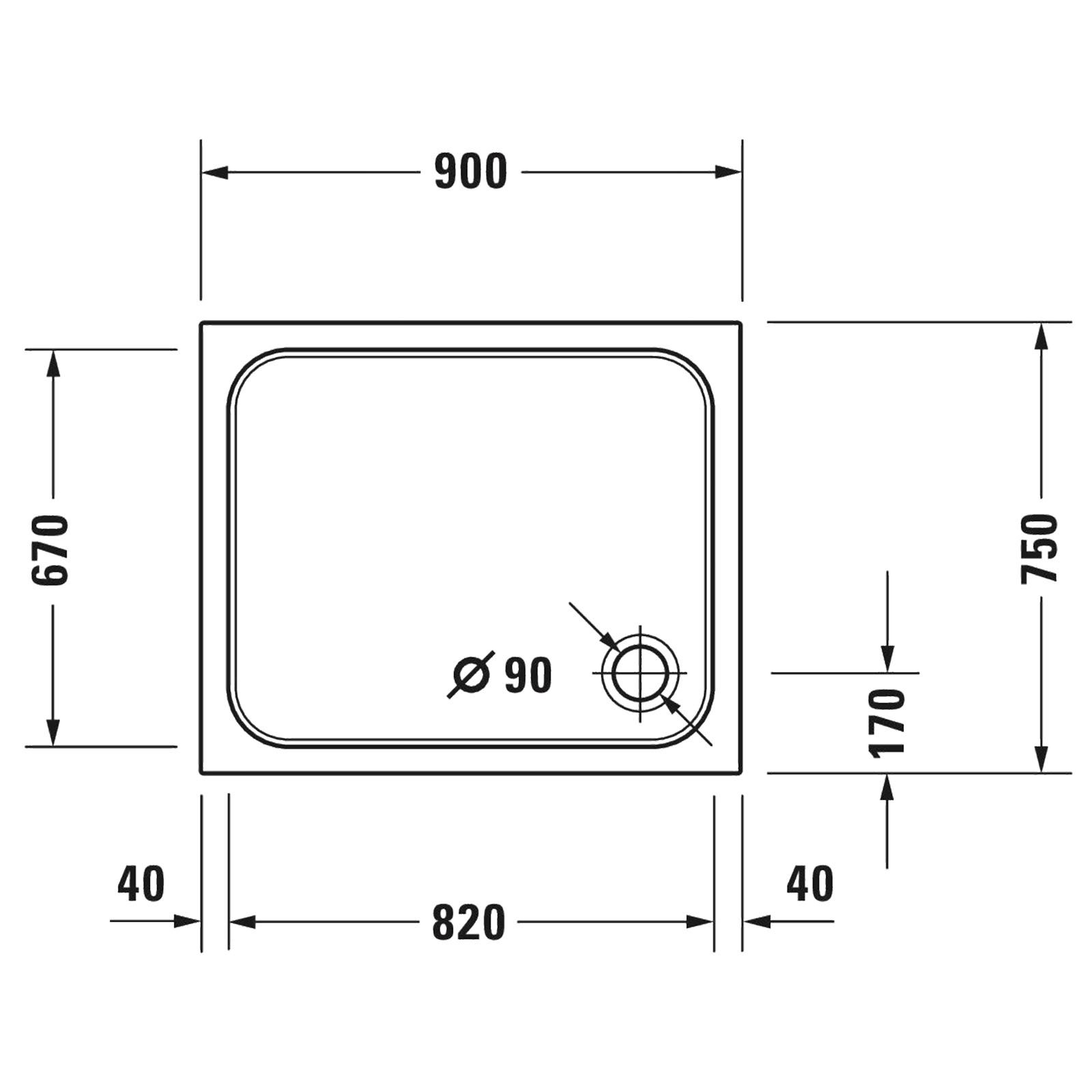 Produktinformationen "Duravit D-Code Duschwanne Rechteck 900x750x85 mm aus Acryl 720104000000000"