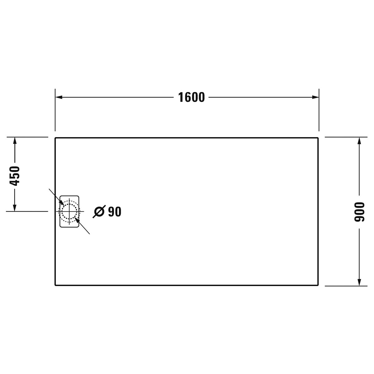 - integrierter und verdeckter Ablauf: Ø 90 mm
