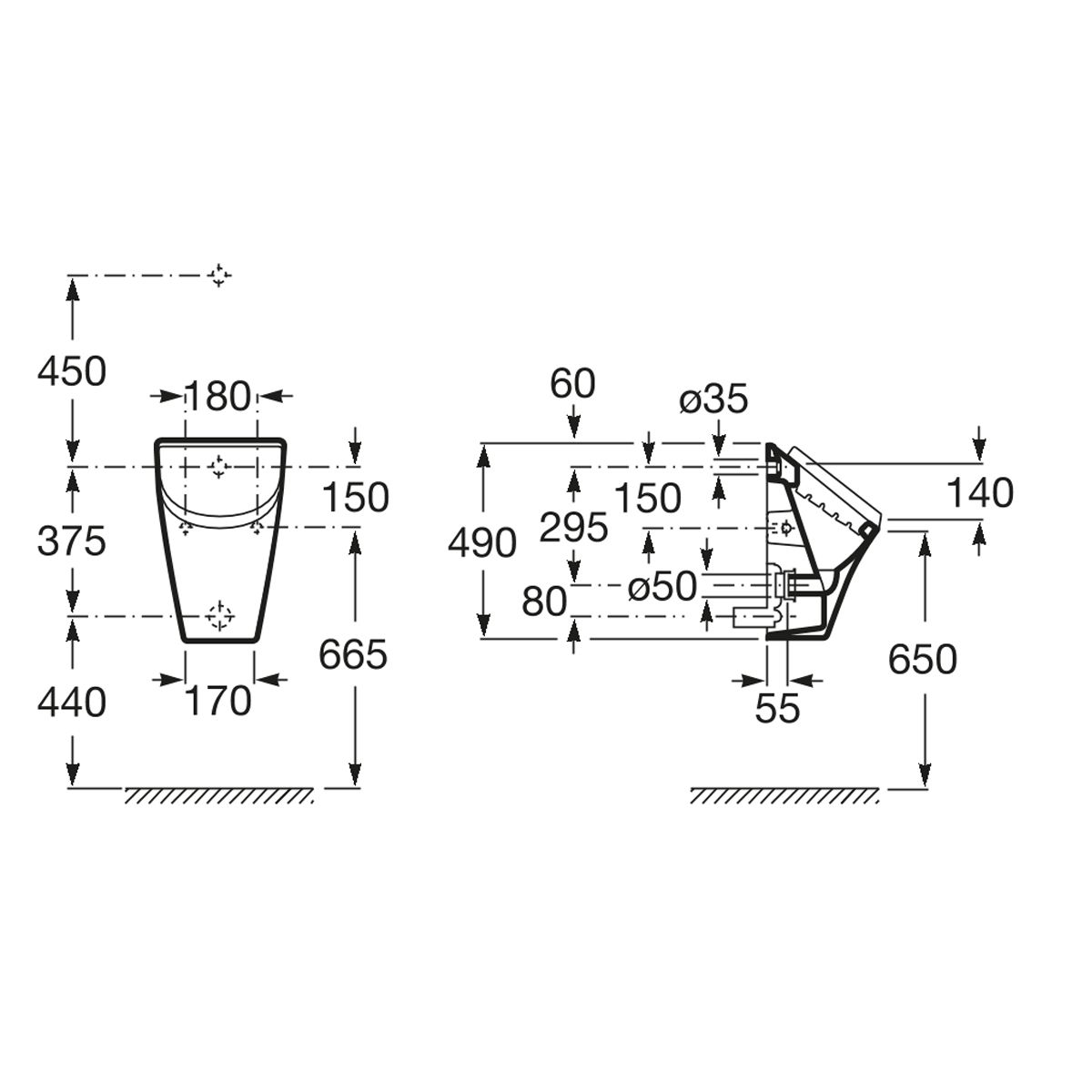 - Befestigungssatz für das Urinal im Lieferumfang enthalten