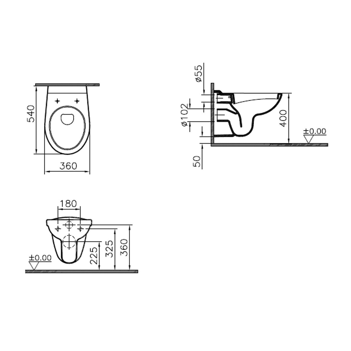 - 1 Vitra Wand Tiefspül WC 355 x 530 x 370
