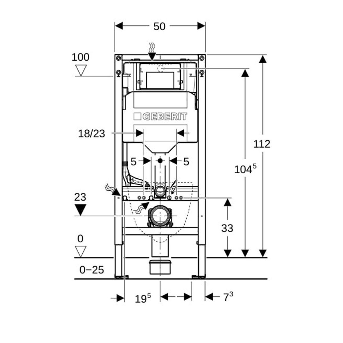 - Rahmen für Wand-WCs mit Anschlussmassen nach EN 33 und Ausladung bis 70 cm