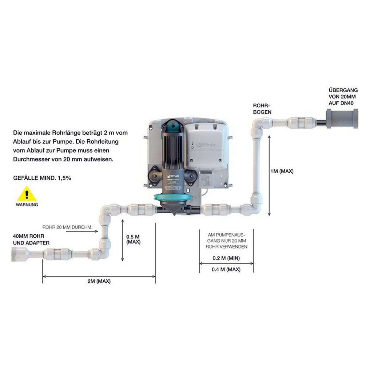 - Kein Gefälle in der Abwasserleitung nötig