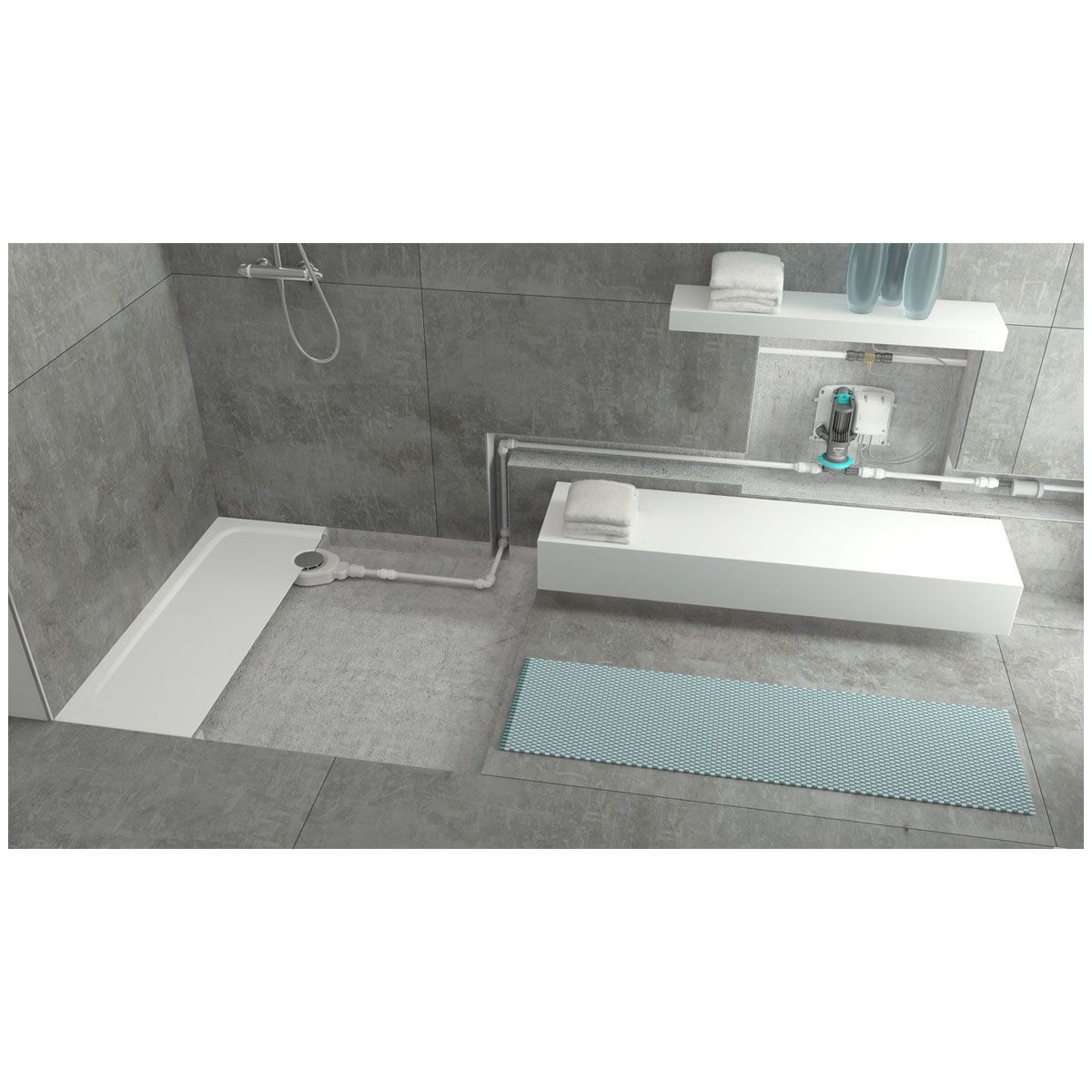 - Die vollautomatische Membranpumpe entsorgt bodengleiche Duschen, indem sie das Abwasser zum nächsten Fallrohr pumpt