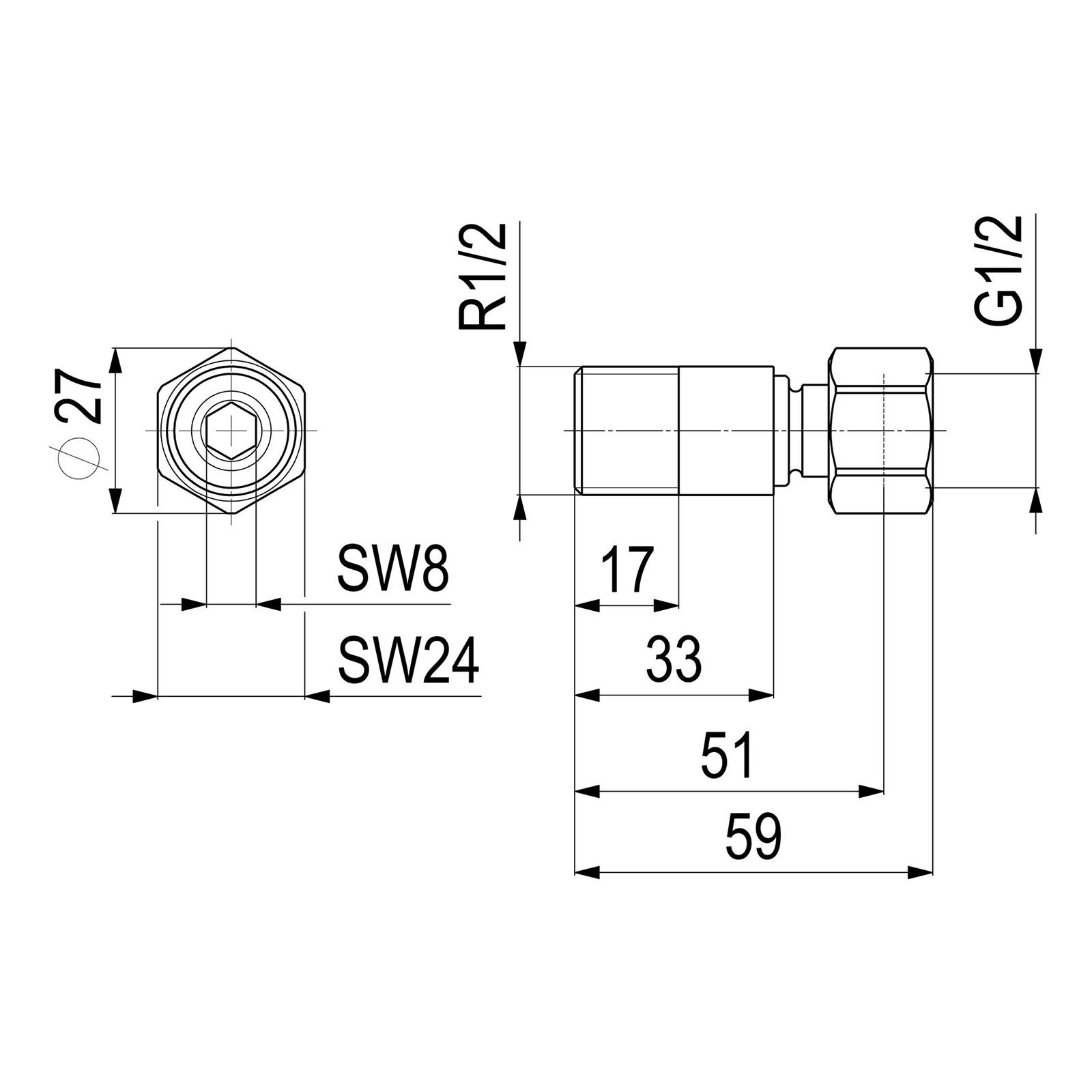 • Ermöglicht die Montage von Kombi-Eckventilen oder Geräteventilen bei zu naheliegenden Wasseranschlüssen an Küchenunterbauten, bei denen sich das Ventil nicht mehr um 360° drehen lässt - dadurch kein Sägen an Küchenmöbel notwendig.