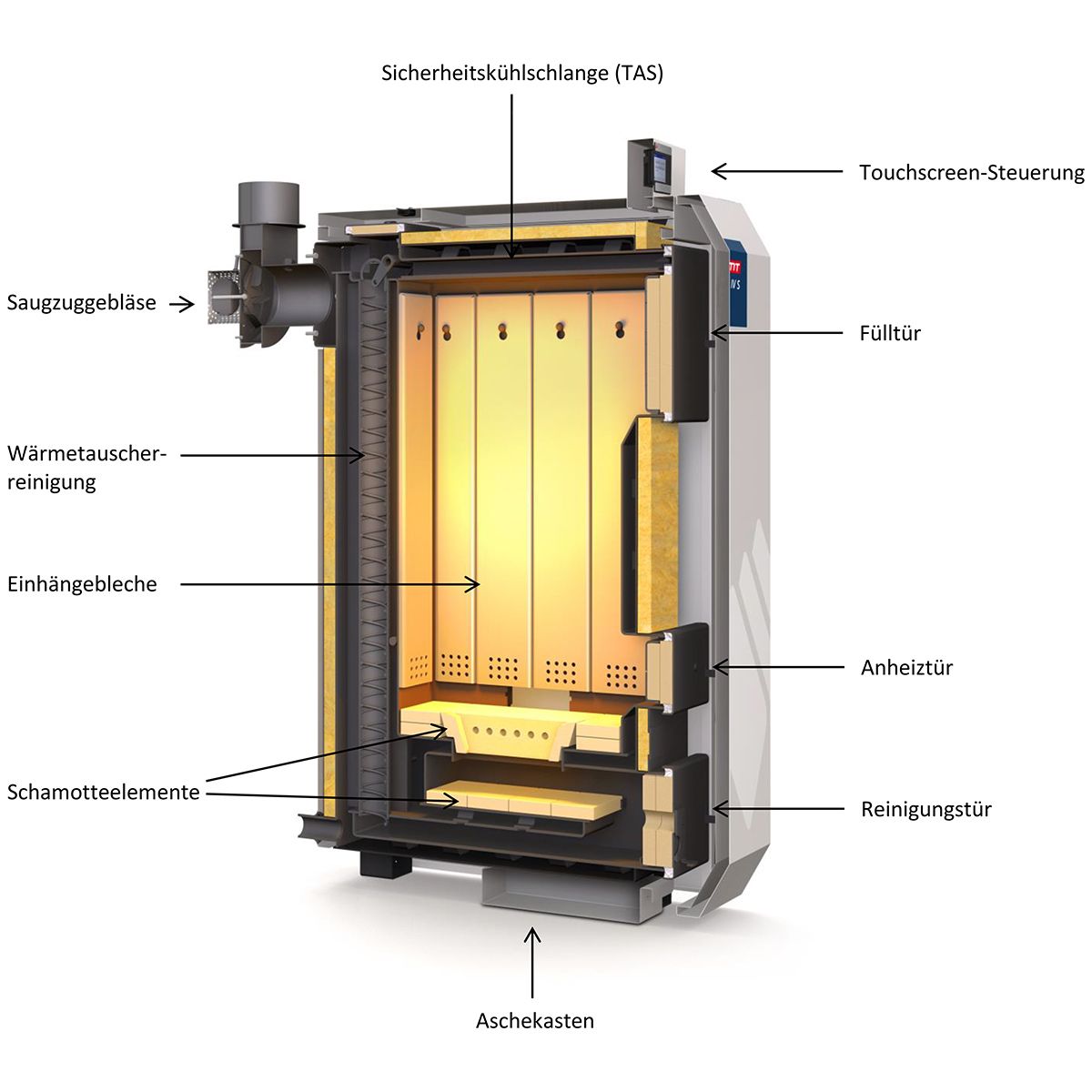 Weiterführende Links zu "NMT HVG-IV 15S Scheitholzkessel Holzvergaser Kessel 17 kW inkl. ST810 Touchscreensteuerung"