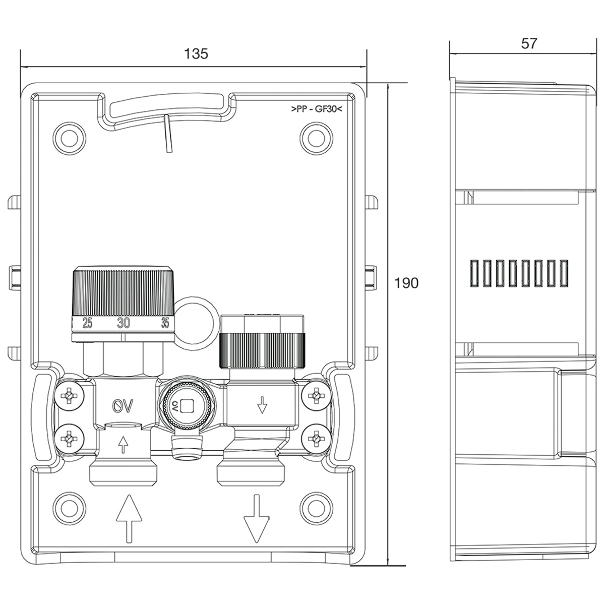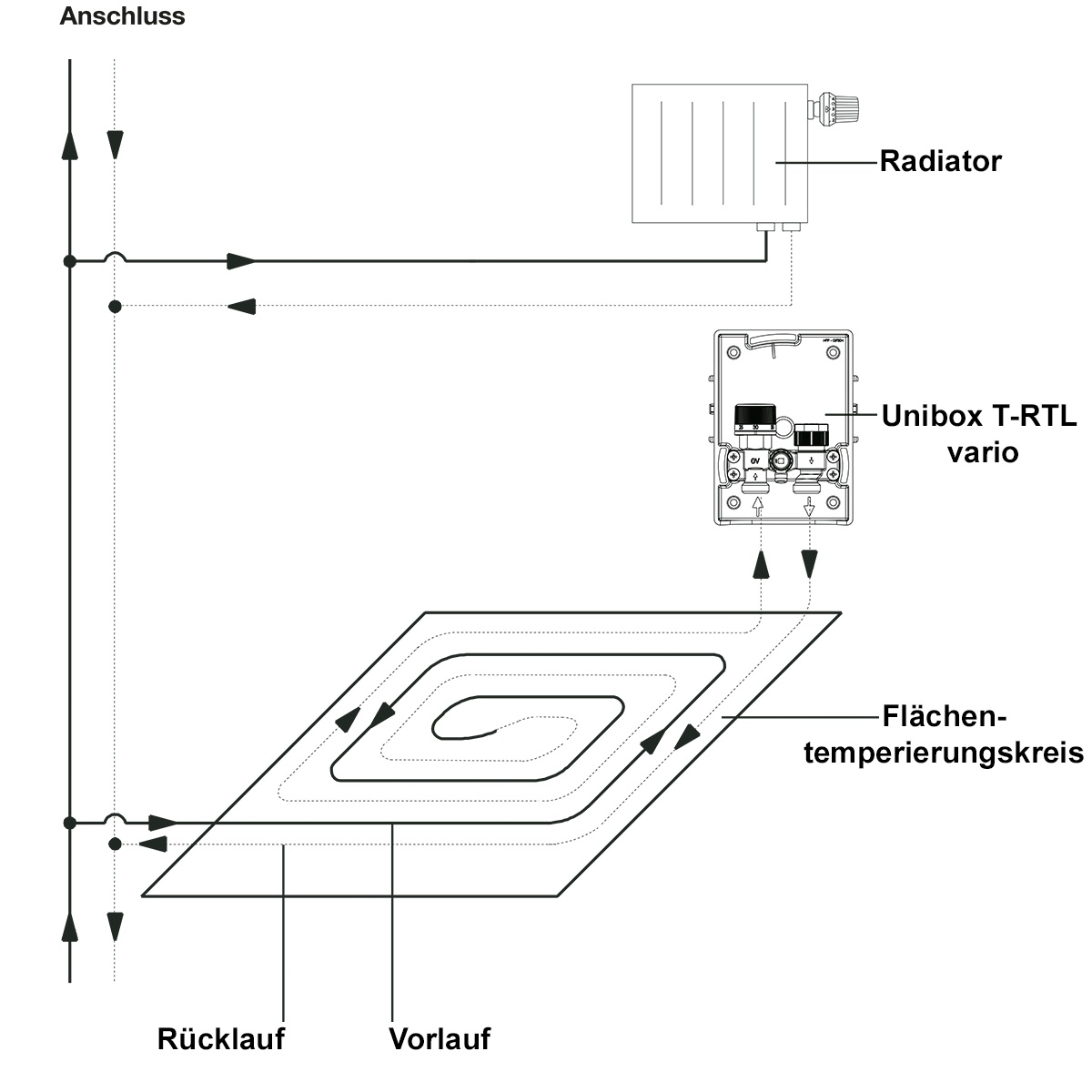 - dient zur Begrenzung der Rücklauftemperatur einer Flächentemperierung
